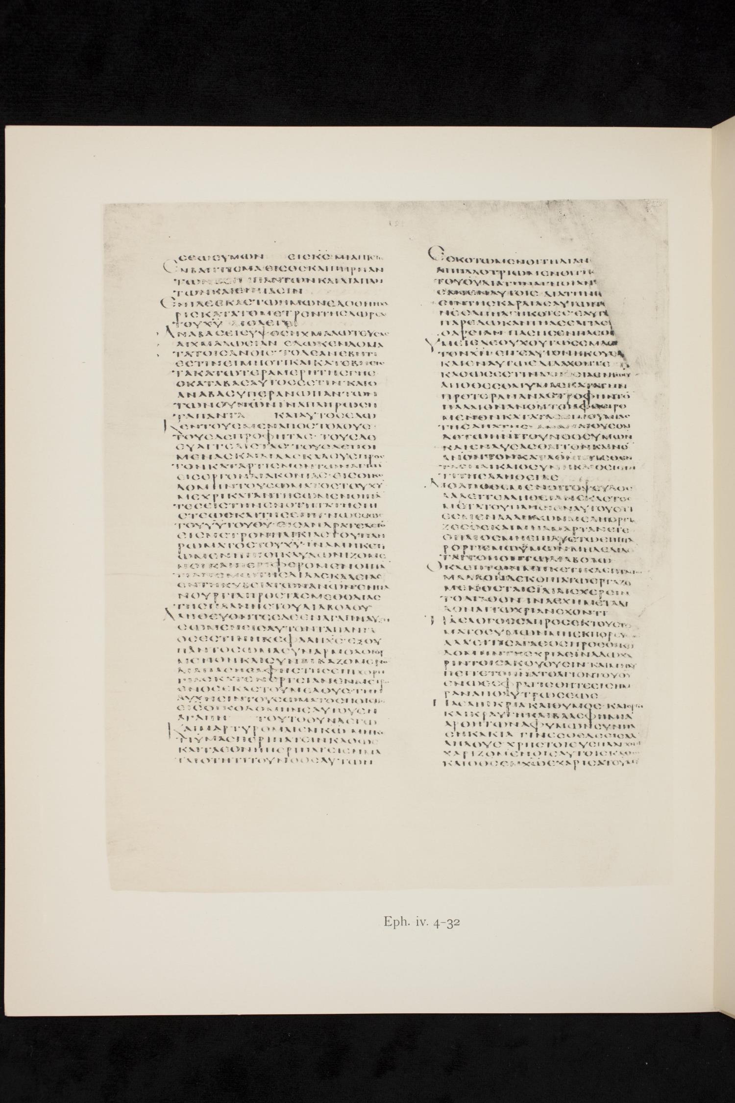Codex Alexandrinus is a fifth century manuscript of the Greek Old Testament, the New Testament, and the Clementine Epistles on parchment. Images are from the 1879–1883 and 1909 full-sized black and white facsimiles produced by the British Museum. For more recent images, please visit the British Museum