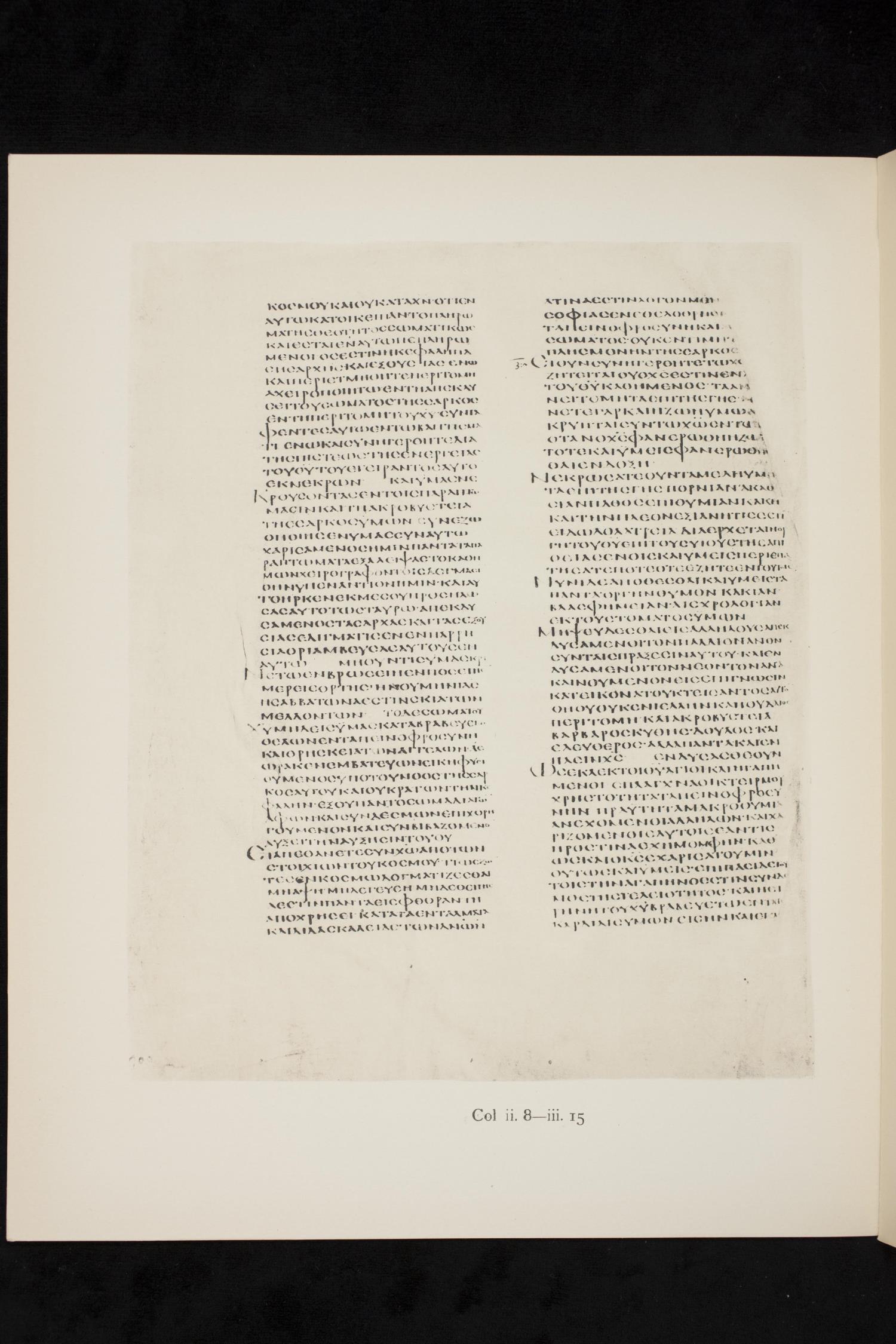 Codex Alexandrinus is a fifth century manuscript of the Greek Old Testament, the New Testament, and the Clementine Epistles on parchment. Images are from the 1879–1883 and 1909 full-sized black and white facsimiles produced by the British Museum. For more recent images, please visit the British Museum