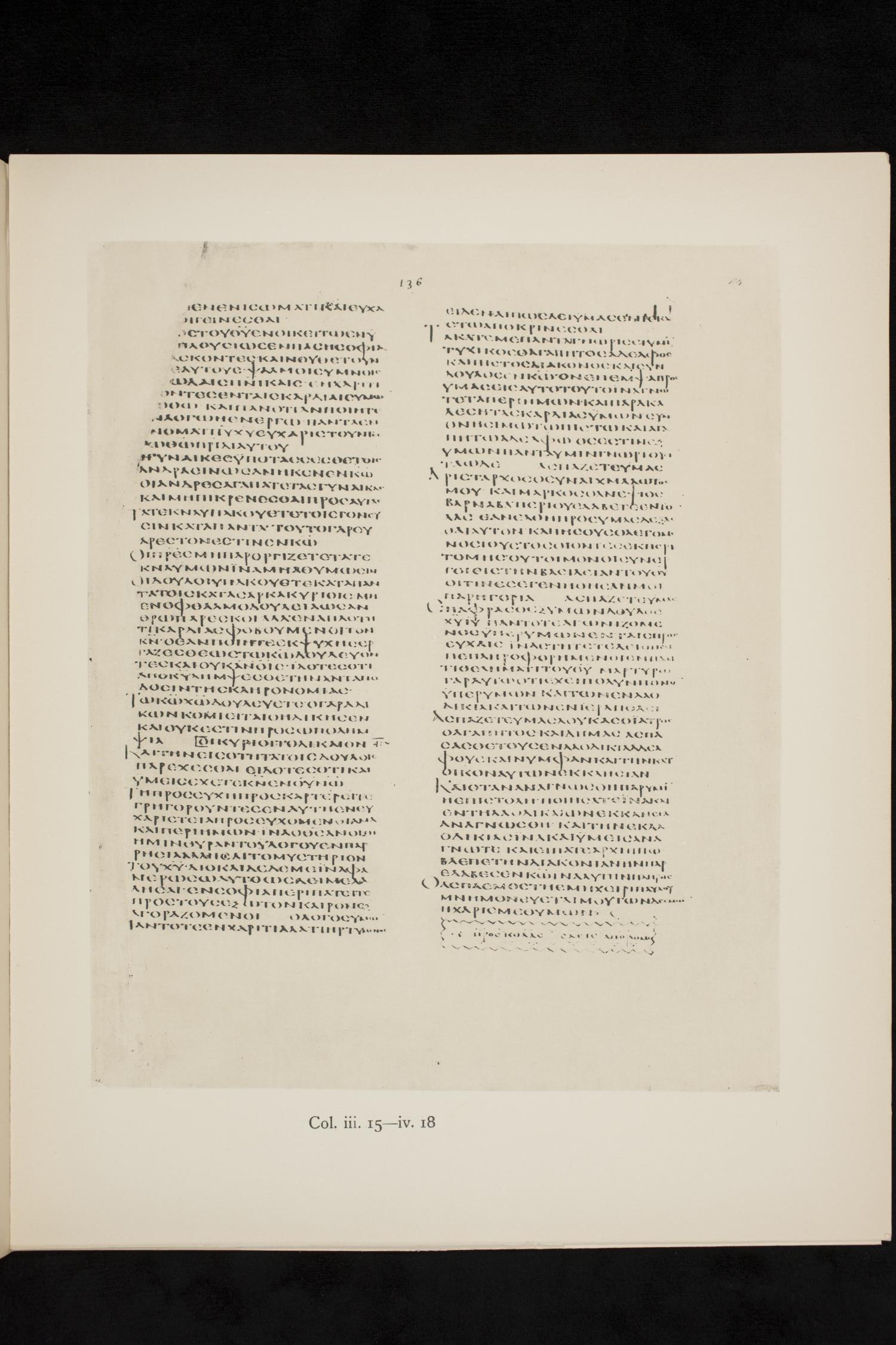 Codex Alexandrinus is a fifth century manuscript of the Greek Old Testament, the New Testament, and the Clementine Epistles on parchment. Images are from the 1879–1883 and 1909 full-sized black and white facsimiles produced by the British Museum. For more recent images, please visit the British Museum