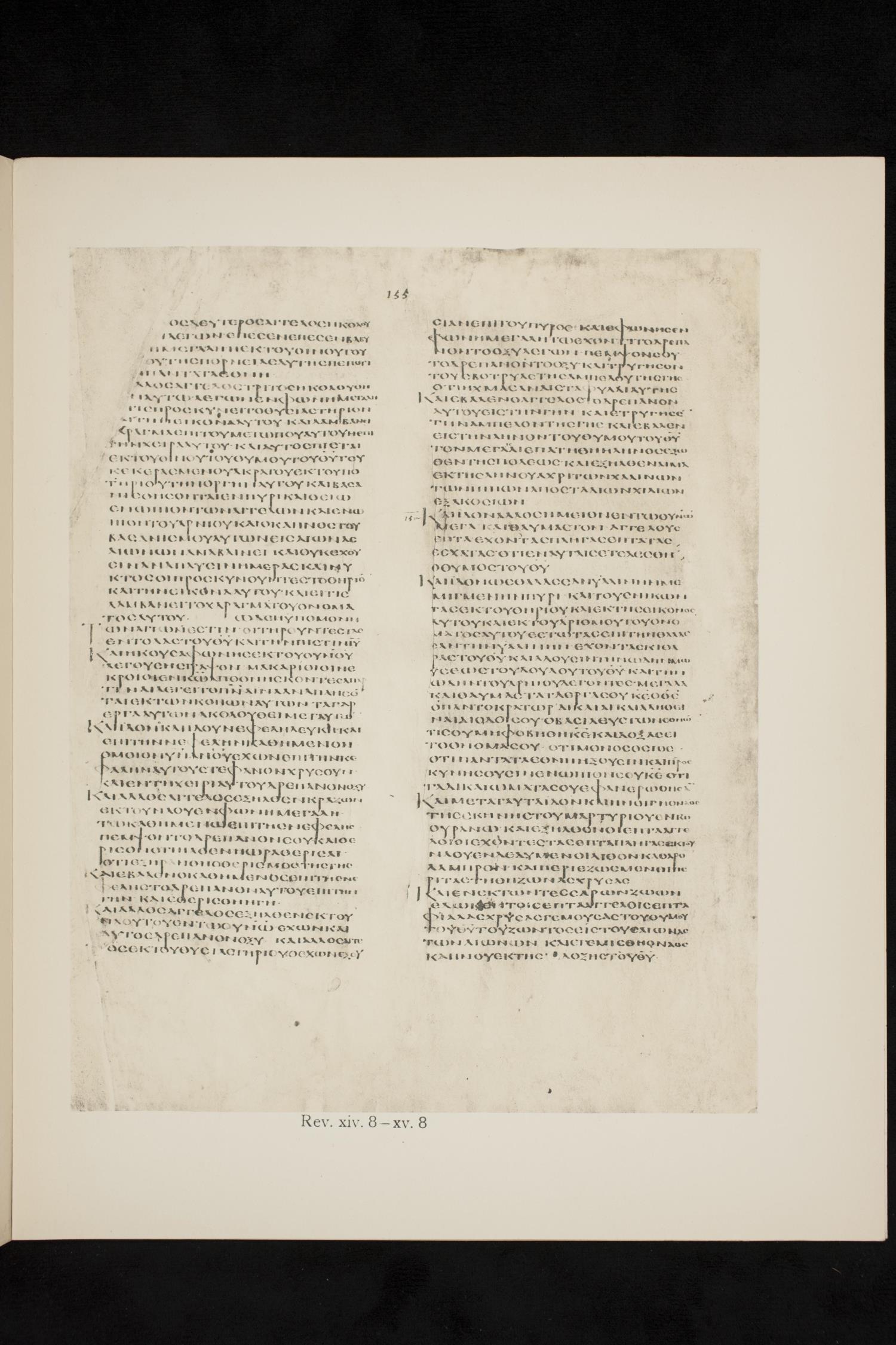 Codex Alexandrinus is a fifth century manuscript of the Greek Old Testament, the New Testament, and the Clementine Epistles on parchment. Images are from the 1879–1883 and 1909 full-sized black and white facsimiles produced by the British Museum. For more recent images, please visit the British Museum