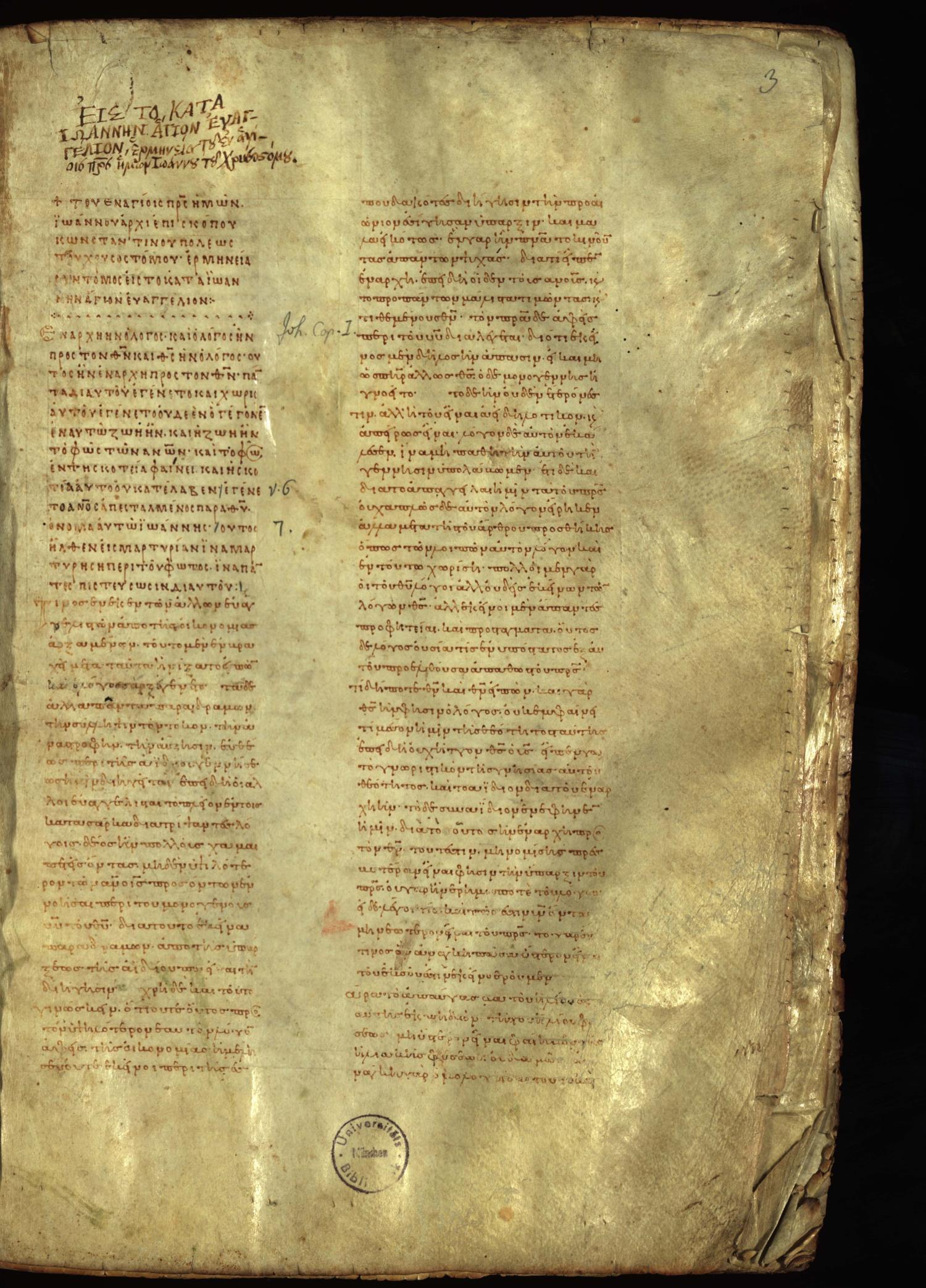 Codex Monacensis is a tenth century manuscript of the Gospels on parchment; 160 leaves, 2 columns, 45 lines per column. For more information and downloadable images, visit Universitätsbibliothek.