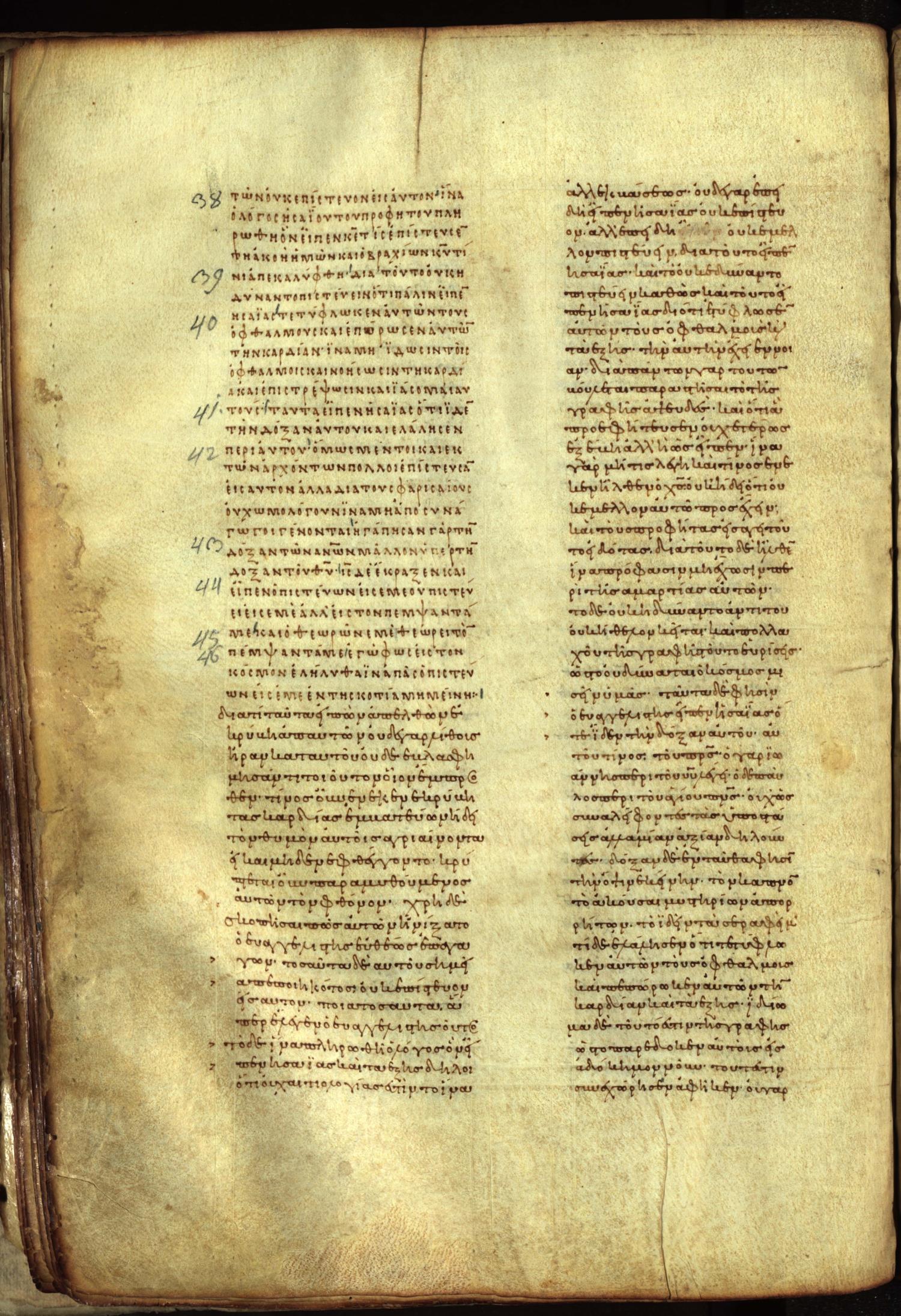 Codex Monacensis is a tenth century manuscript of the Gospels on parchment; 160 leaves, 2 columns, 45 lines per column. For more information and downloadable images, visit Universitätsbibliothek.