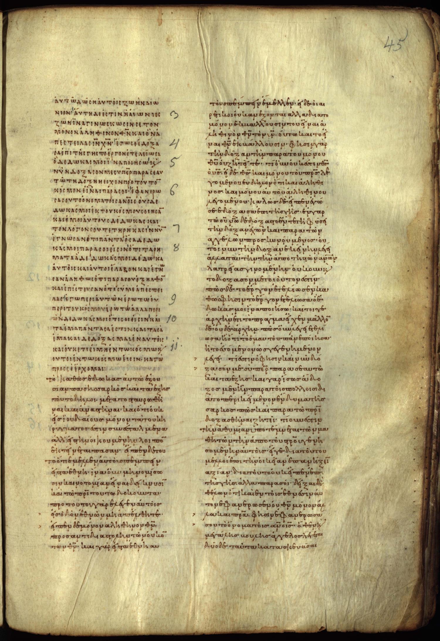 Codex Monacensis is a tenth century manuscript of the Gospels on parchment; 160 leaves, 2 columns, 45 lines per column. For more information and downloadable images, visit Universitätsbibliothek.