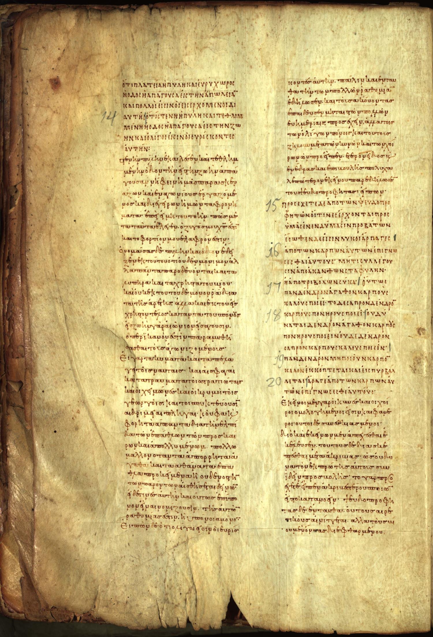 ἀπὸ τῶν καρπῶν αὐτῶν ἐπιγνώσεσθε αὐτούς· μήτι συλλέγουσιν ἀπὸ ἀκανθῶν σταφυλὰς ἢ ἀπὸ τριβόλων σῦκα;