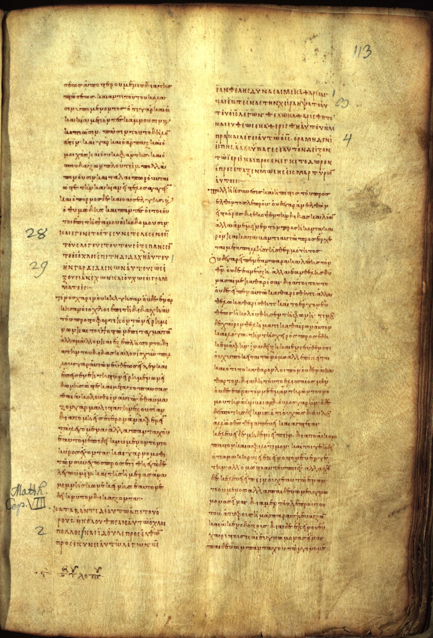 Codex Monacensis is a tenth century manuscript of the Gospels on parchment; 160 leaves, 2 columns, 45 lines per column. For more information and downloadable images, visit Universitätsbibliothek.