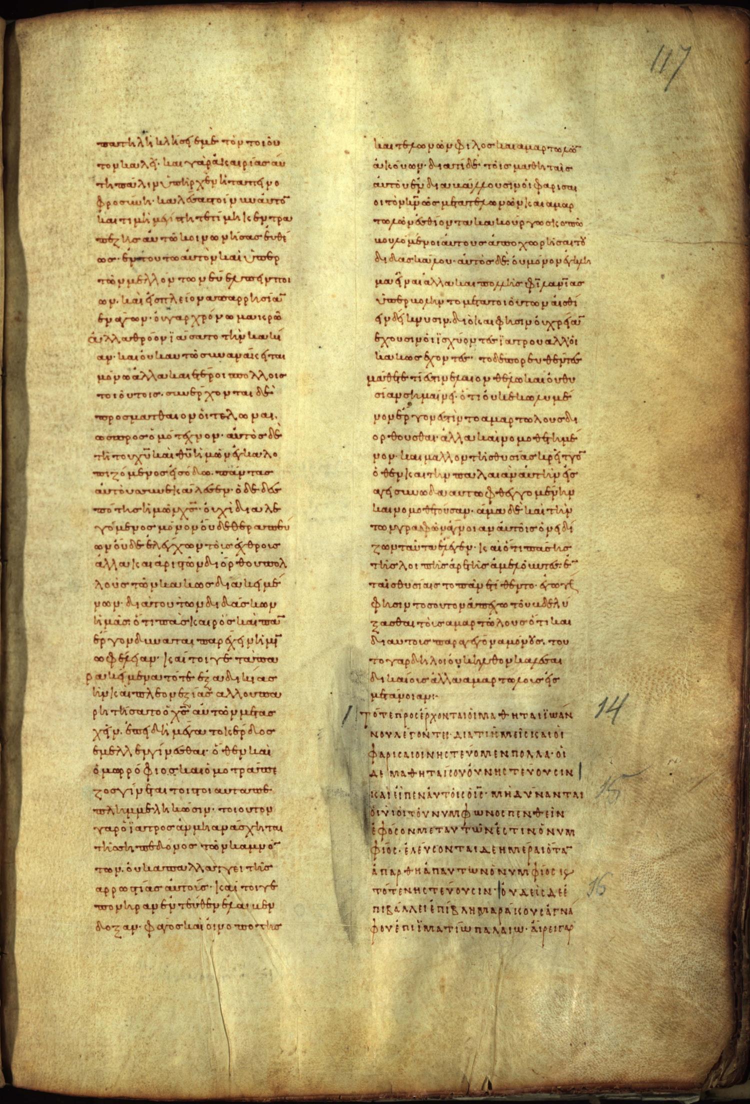 Τότε προσέρχονται αὐτῷ οἱ μαθηταὶ Ἰωάνου / Ἰωάννου λέγοντες Διὰ τί ἡμεῖς καὶ οἱ Φαρισαῖοι νηστεύομεν, {πολλά} οἱ δὲ μαθηταὶ σοῦ οὐ νηστεύουσιν;