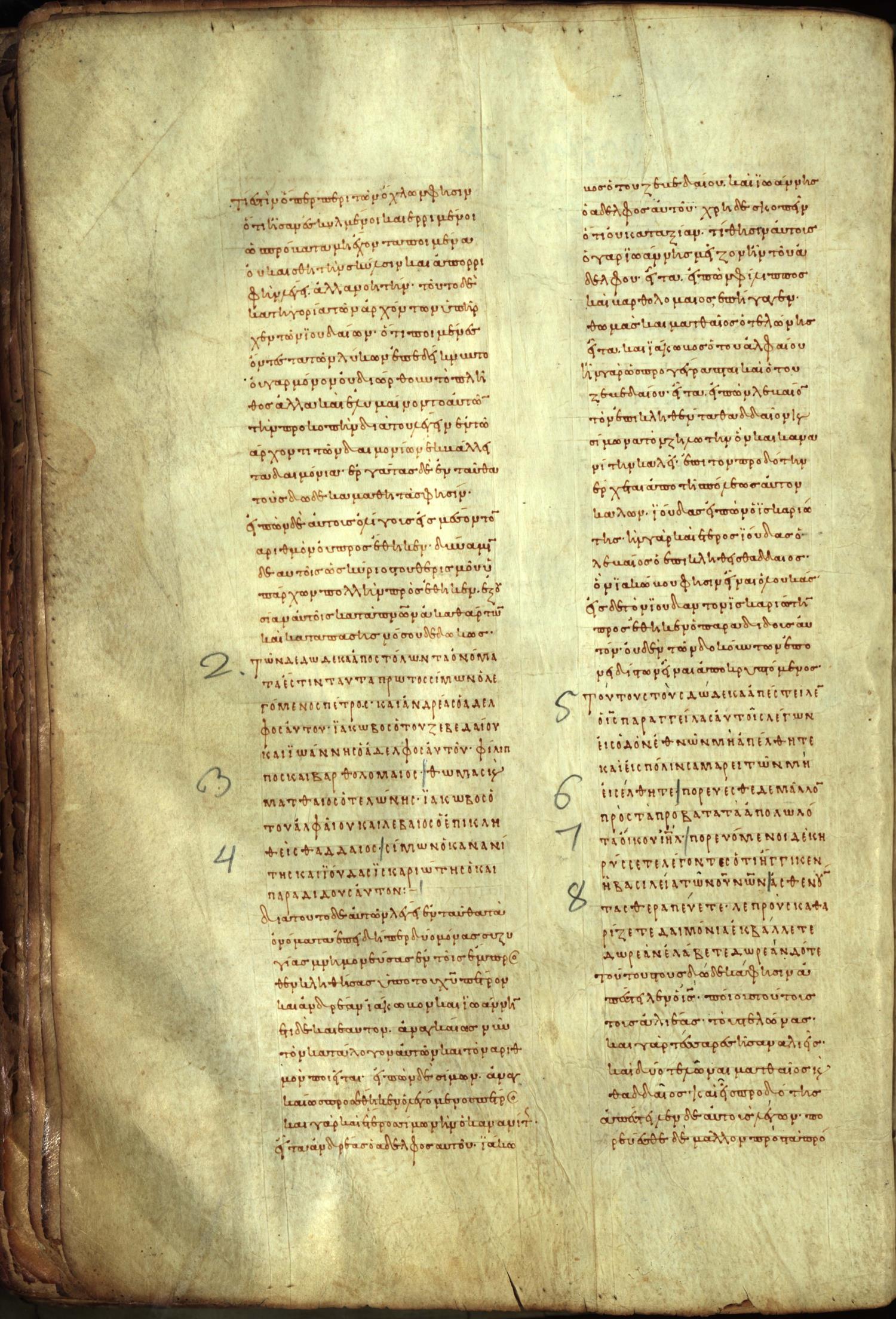 Codex Monacensis is a tenth century manuscript of the Gospels on parchment; 160 leaves, 2 columns, 45 lines per column. For more information and downloadable images, visit Universitätsbibliothek.