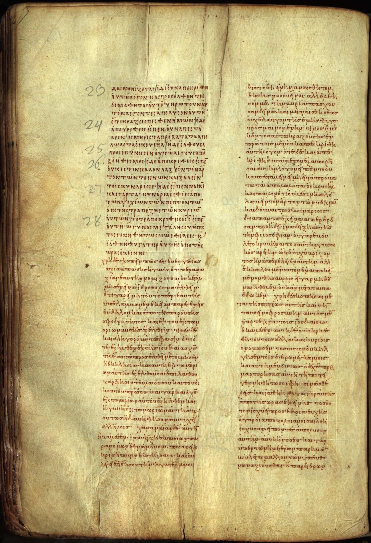 Codex Monacensis is a tenth century manuscript of the Gospels on parchment; 160 leaves, 2 columns, 45 lines per column. For more information and downloadable images, visit Universitätsbibliothek.