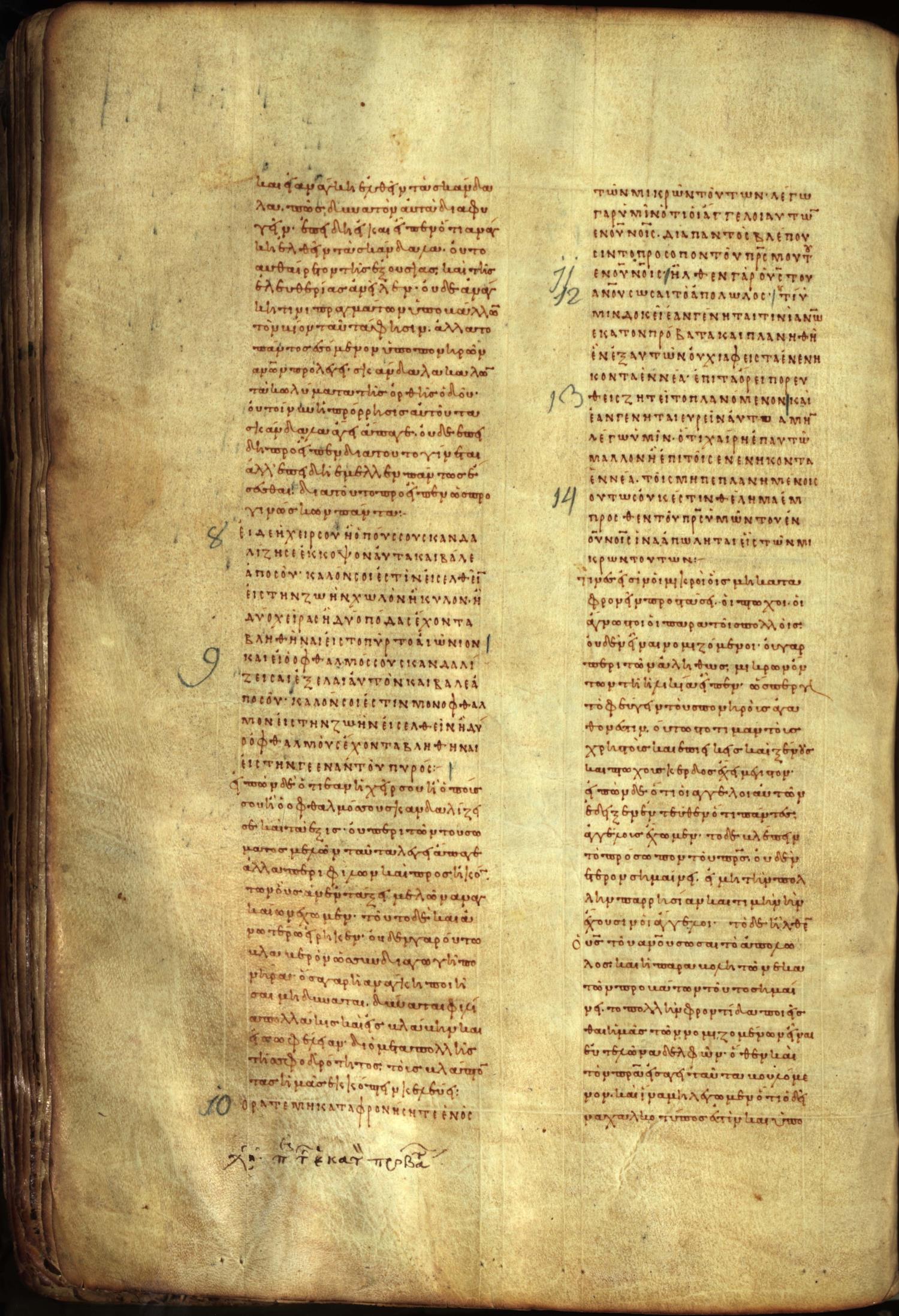 Codex Monacensis is a tenth century manuscript of the Gospels on parchment; 160 leaves, 2 columns, 45 lines per column. For more information and downloadable images, visit Universitätsbibliothek.