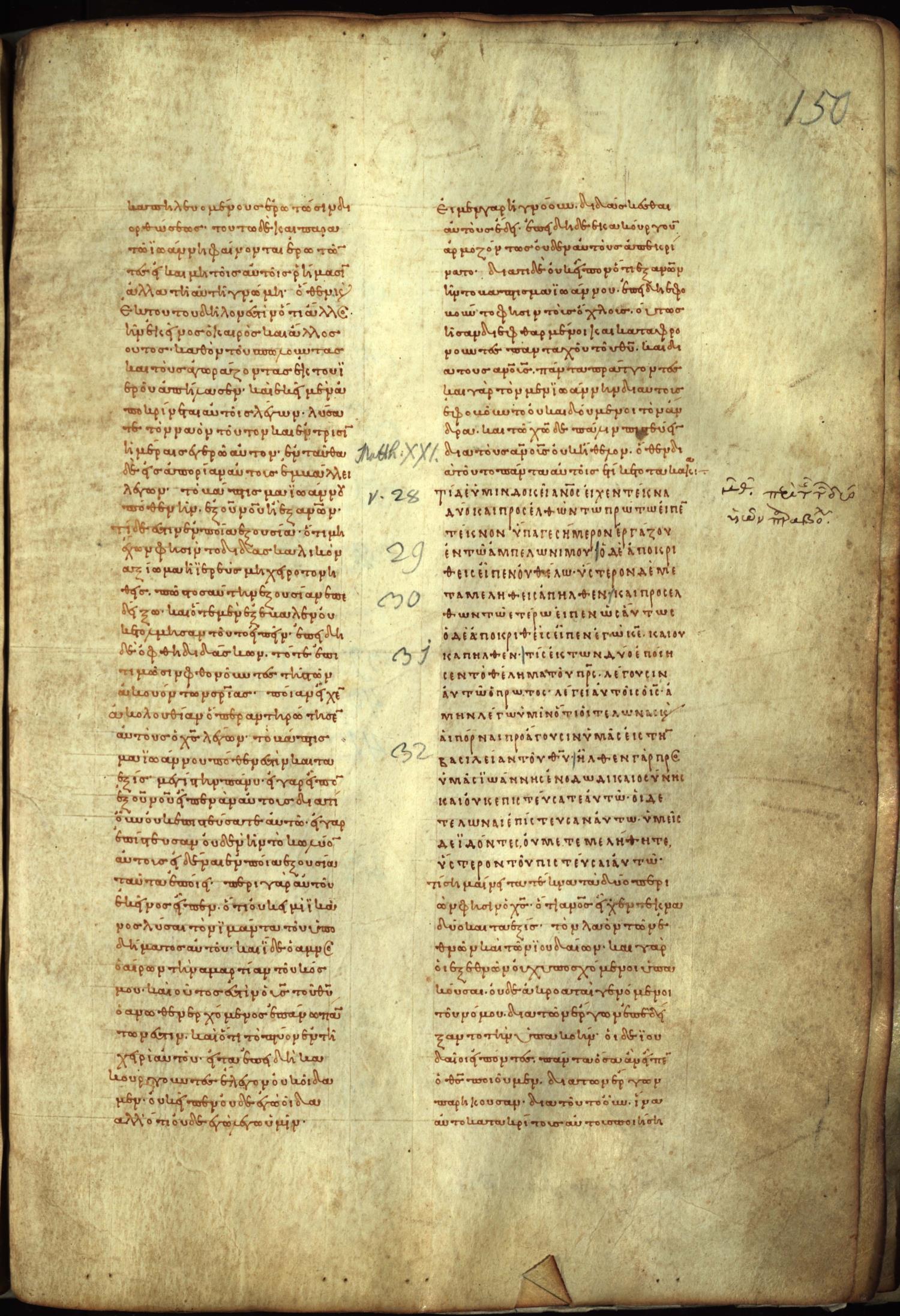 Codex Monacensis is a tenth century manuscript of the Gospels on parchment; 160 leaves, 2 columns, 45 lines per column. For more information and downloadable images, visit Universitätsbibliothek.