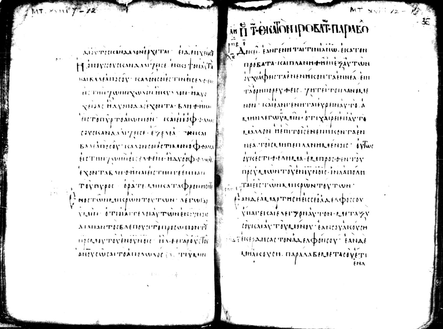 Ninth century majuscule of the Gospels on parchment; 309 leaves, single column, 16+ lines per column. Digital images are from microfilm.