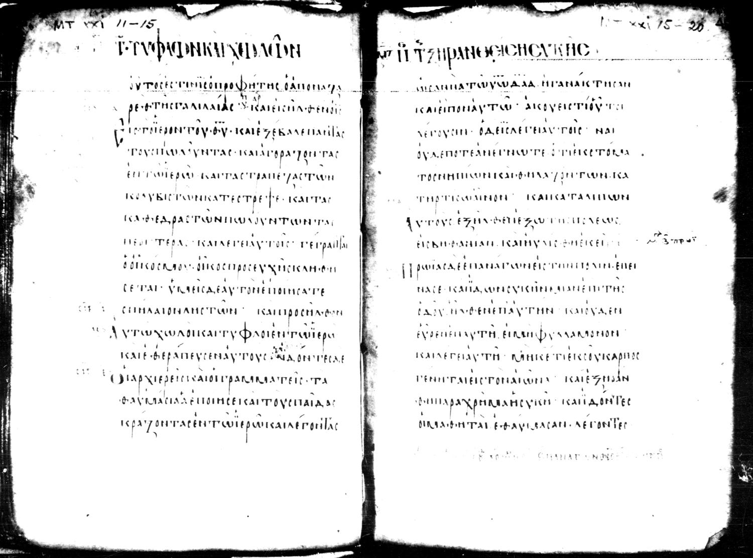 Ninth century majuscule of the Gospels on parchment; 309 leaves, single column, 16+ lines per column. Digital images are from microfilm.