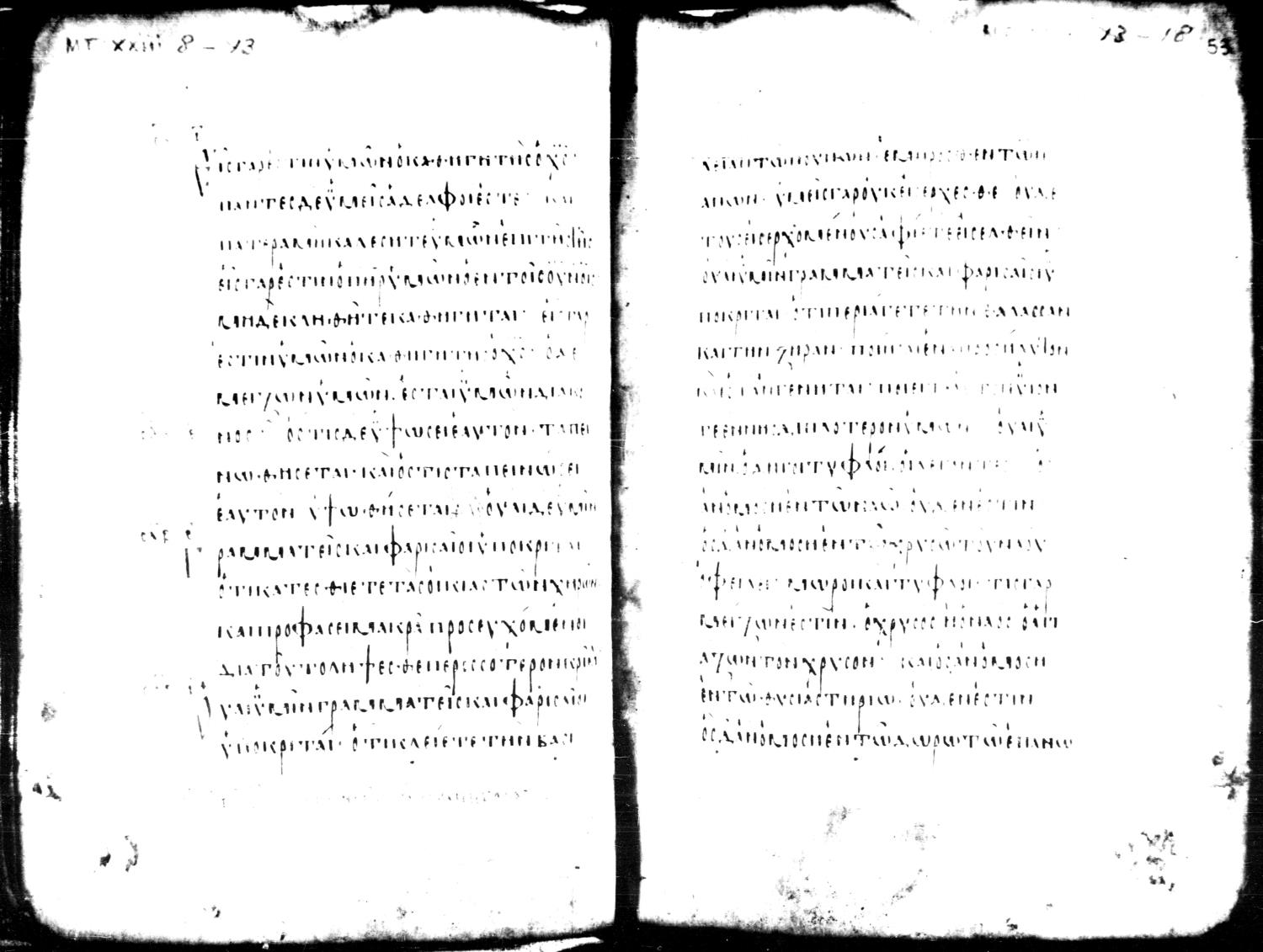 Ninth century majuscule of the Gospels on parchment; 309 leaves, single column, 16+ lines per column. Digital images are from microfilm.