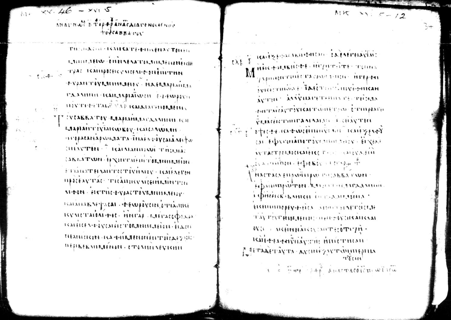 Ἀναστὰς δὲ πρωὶ πρώτῃ σαββάτου ἐφάνη πρῶτον Μαρίᾳ τῇ Μαγδαληνῇ, παρ´ ἧς ἐκβεβλήκει ἑπτὰ δαιμόνια.