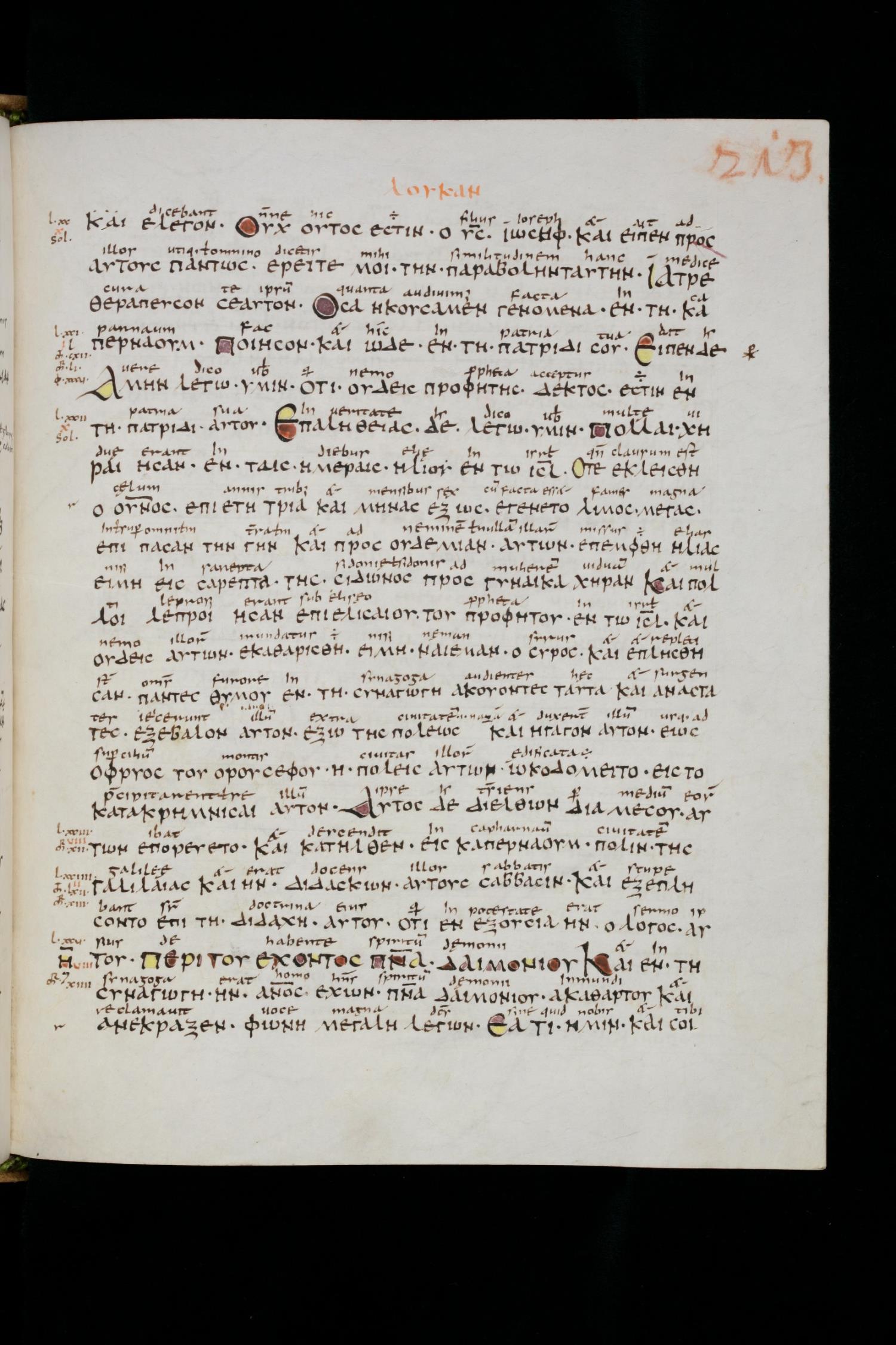 Codex Sangallensis is a ninth century Greek-Latin diglot majuscule of the Gospels on parchment; 198 leaves, single column, 17-20 lines per column. For recent images, please visit e-codices, the Virtual Manuscript Library of Switzerland.
