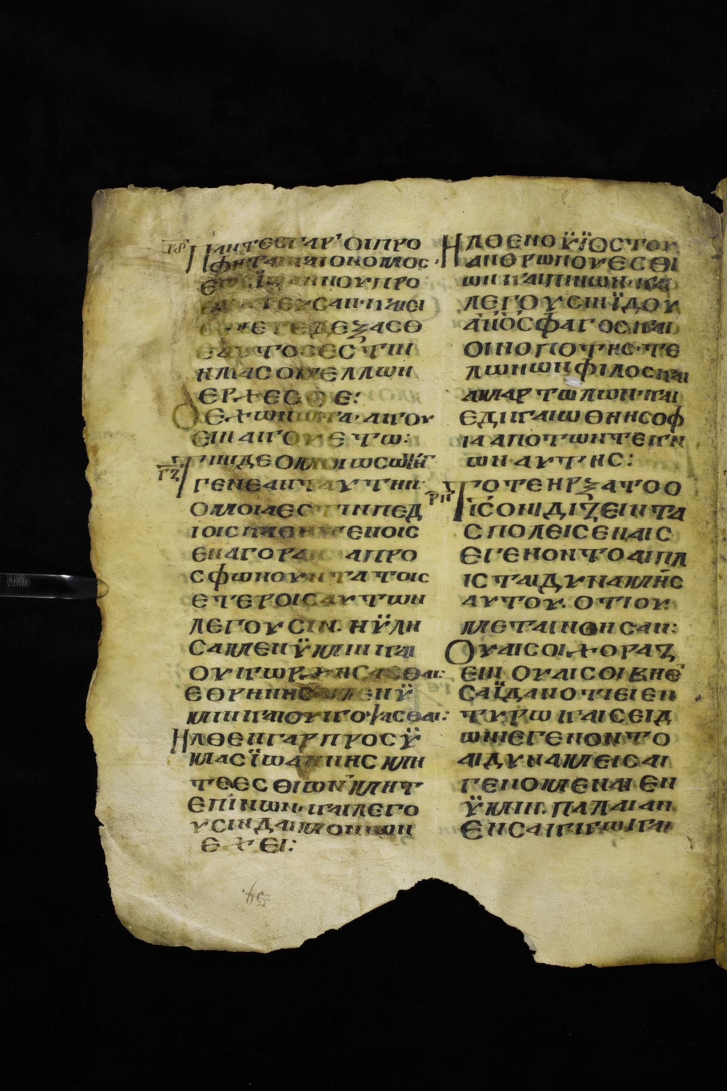 Ninth century majuscule of the Gospels on parchment; 249 leaves, 2 columns, 22-28 lines per column. Images were taken at the National Centre of Manuscripts in the Republic of Georgia.