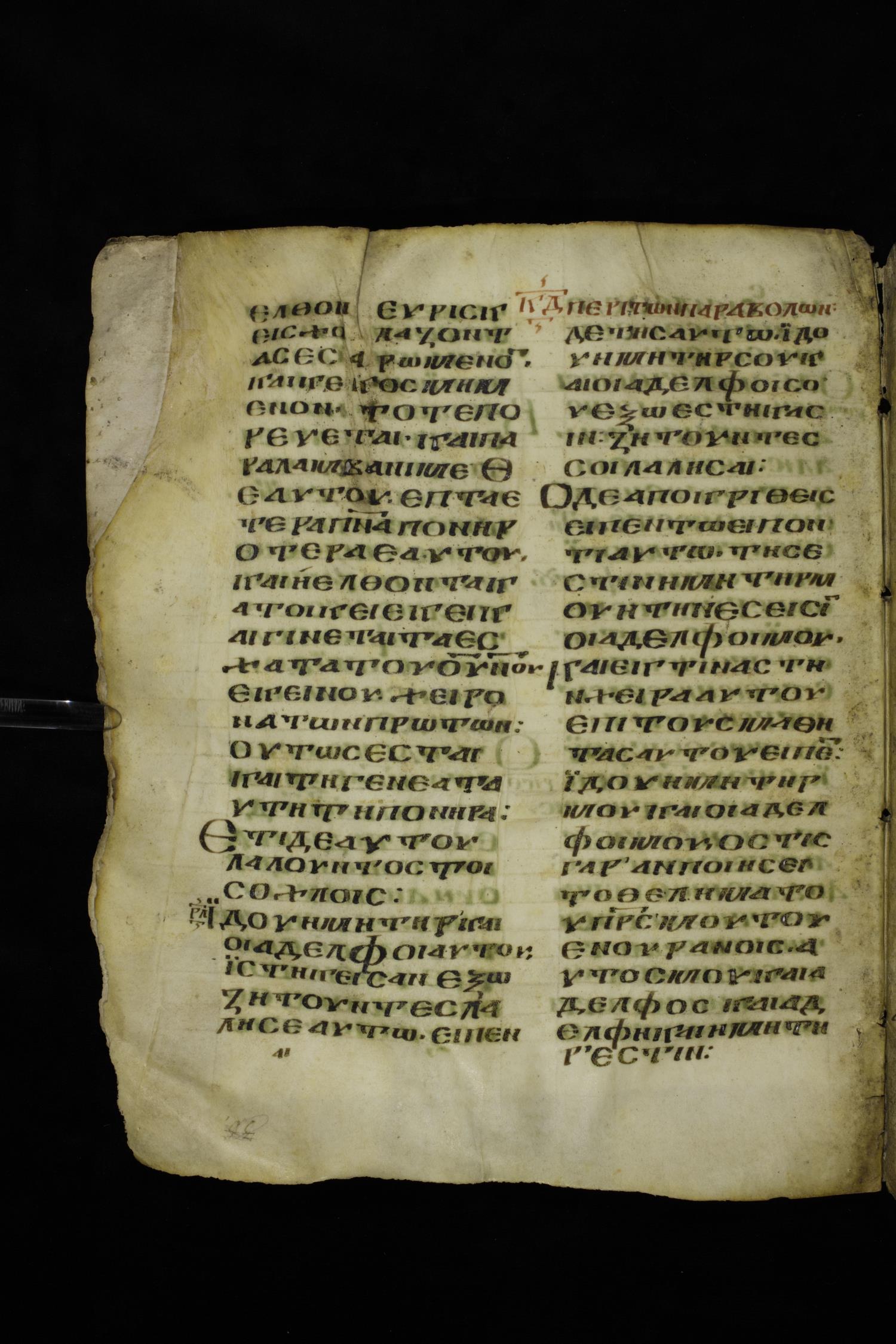 Ninth century majuscule of the Gospels on parchment; 249 leaves, 2 columns, 22-28 lines per column. Images were taken at the National Centre of Manuscripts in the Republic of Georgia.