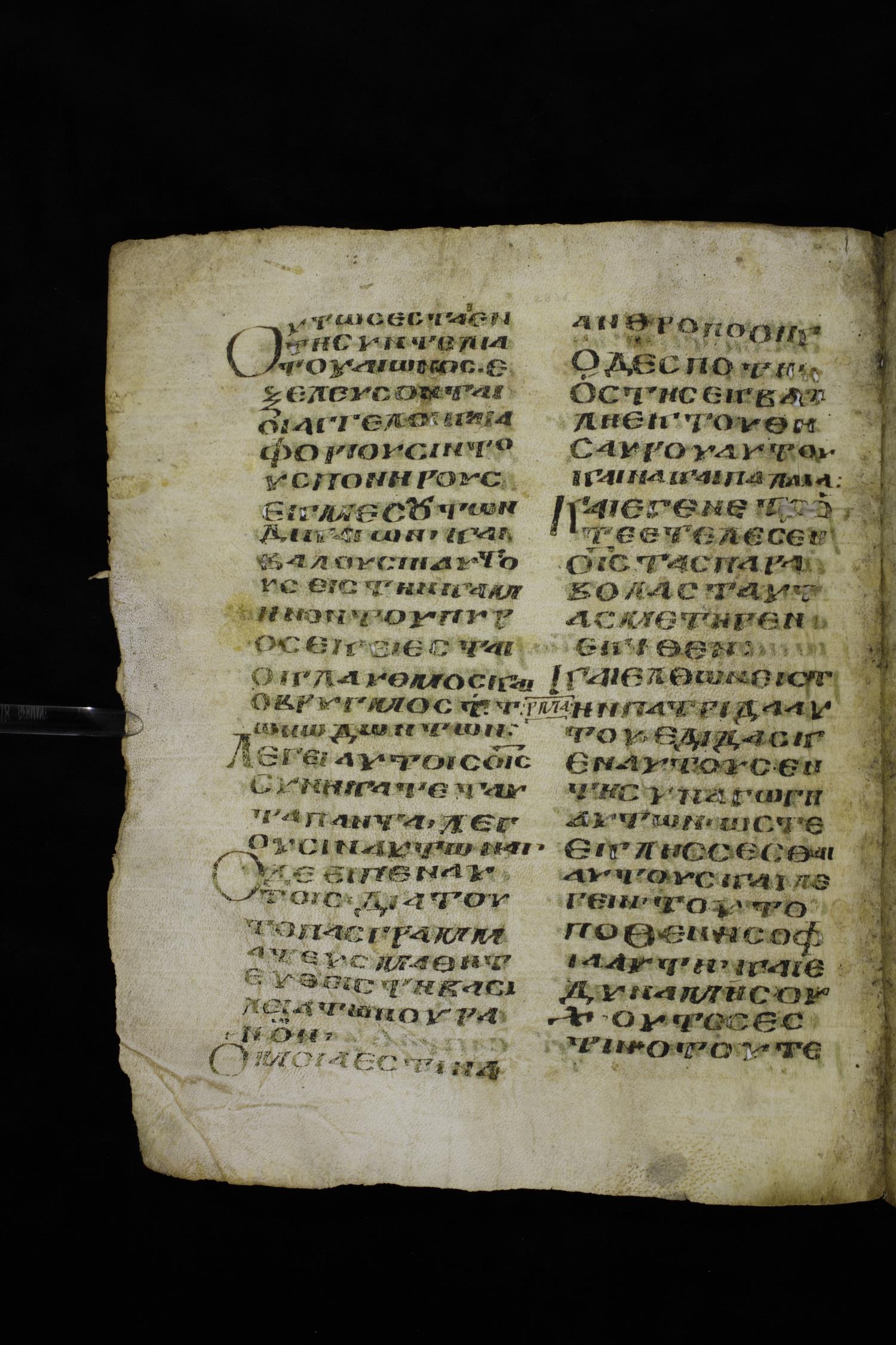 Ninth century majuscule of the Gospels on parchment; 249 leaves, 2 columns, 22-28 lines per column. Images were taken at the National Centre of Manuscripts in the Republic of Georgia.