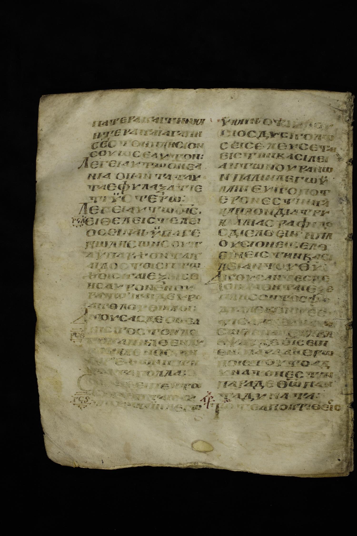 Ninth century majuscule of the Gospels on parchment; 249 leaves, 2 columns, 22-28 lines per column. Images were taken at the National Centre of Manuscripts in the Republic of Georgia.