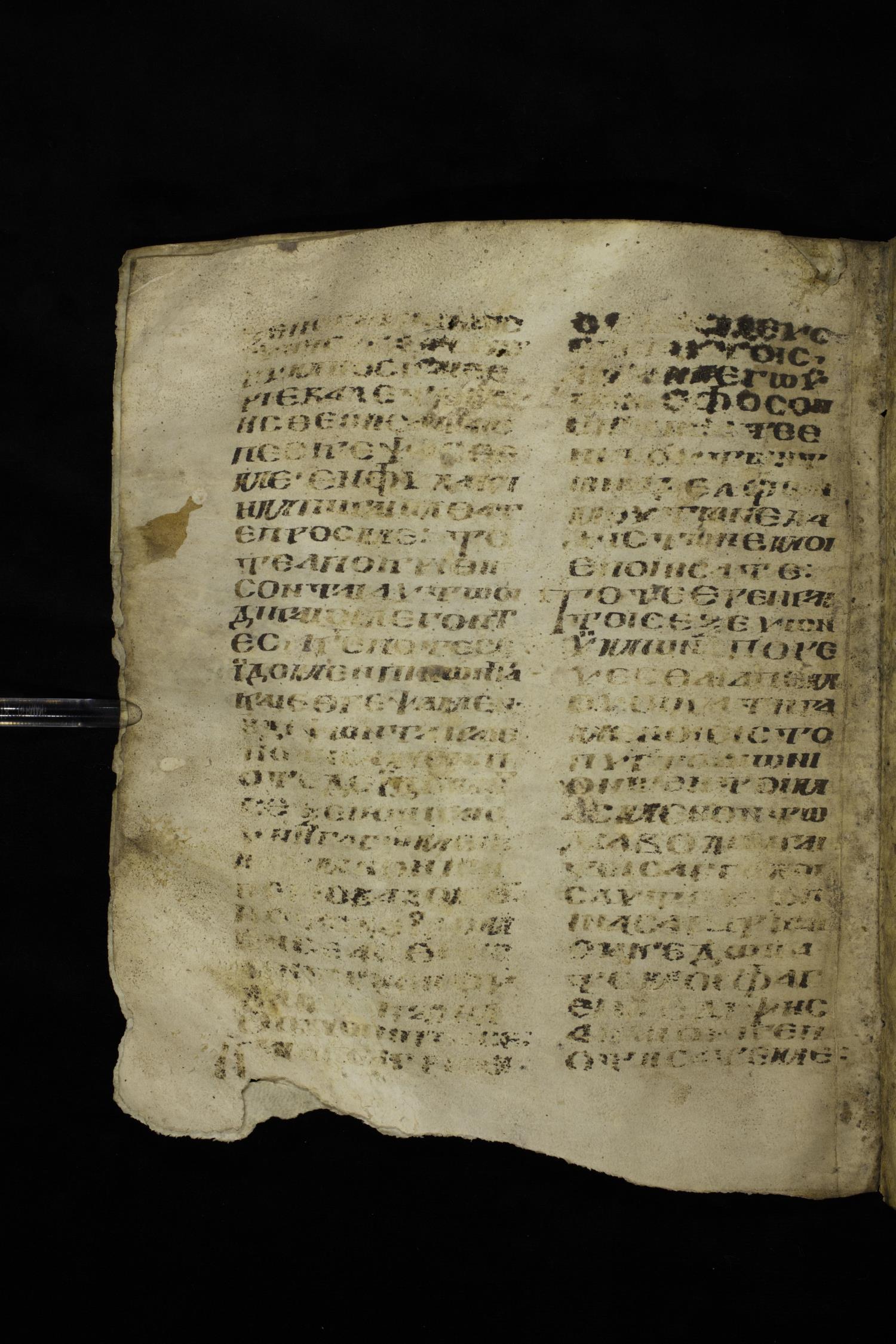 Ninth century majuscule of the Gospels on parchment; 249 leaves, 2 columns, 22-28 lines per column. Images were taken at the National Centre of Manuscripts in the Republic of Georgia.