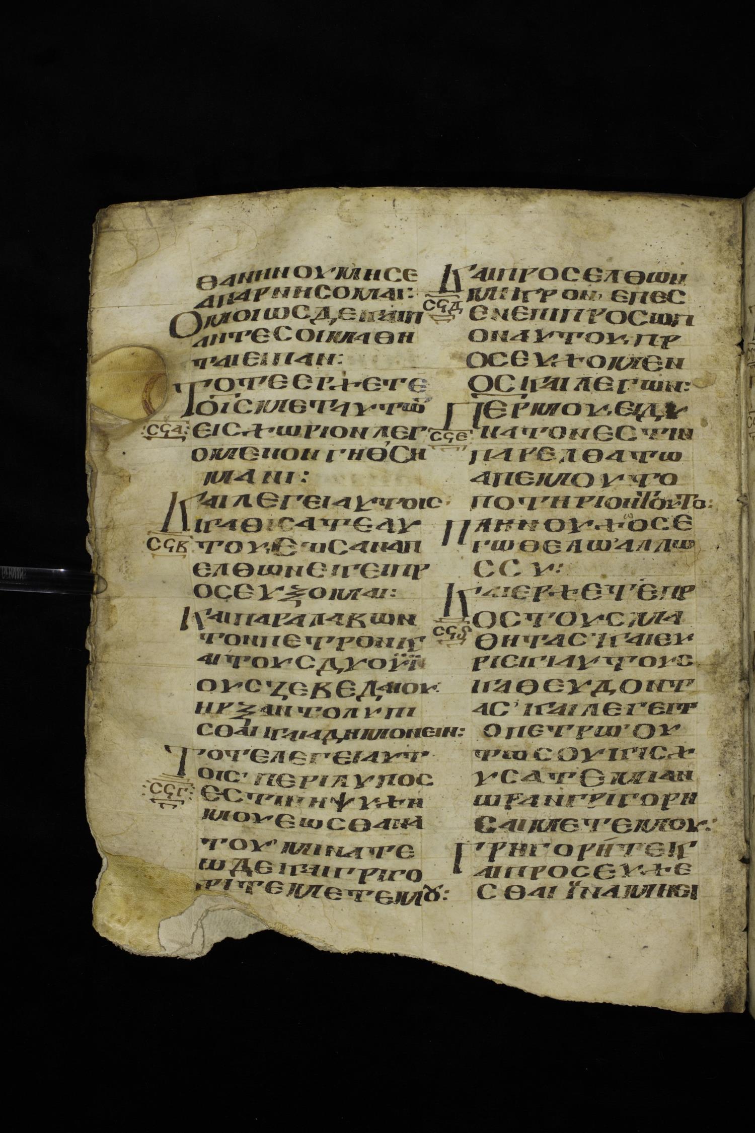 Ninth century majuscule of the Gospels on parchment; 249 leaves, 2 columns, 22-28 lines per column. Images were taken at the National Centre of Manuscripts in the Republic of Georgia.
