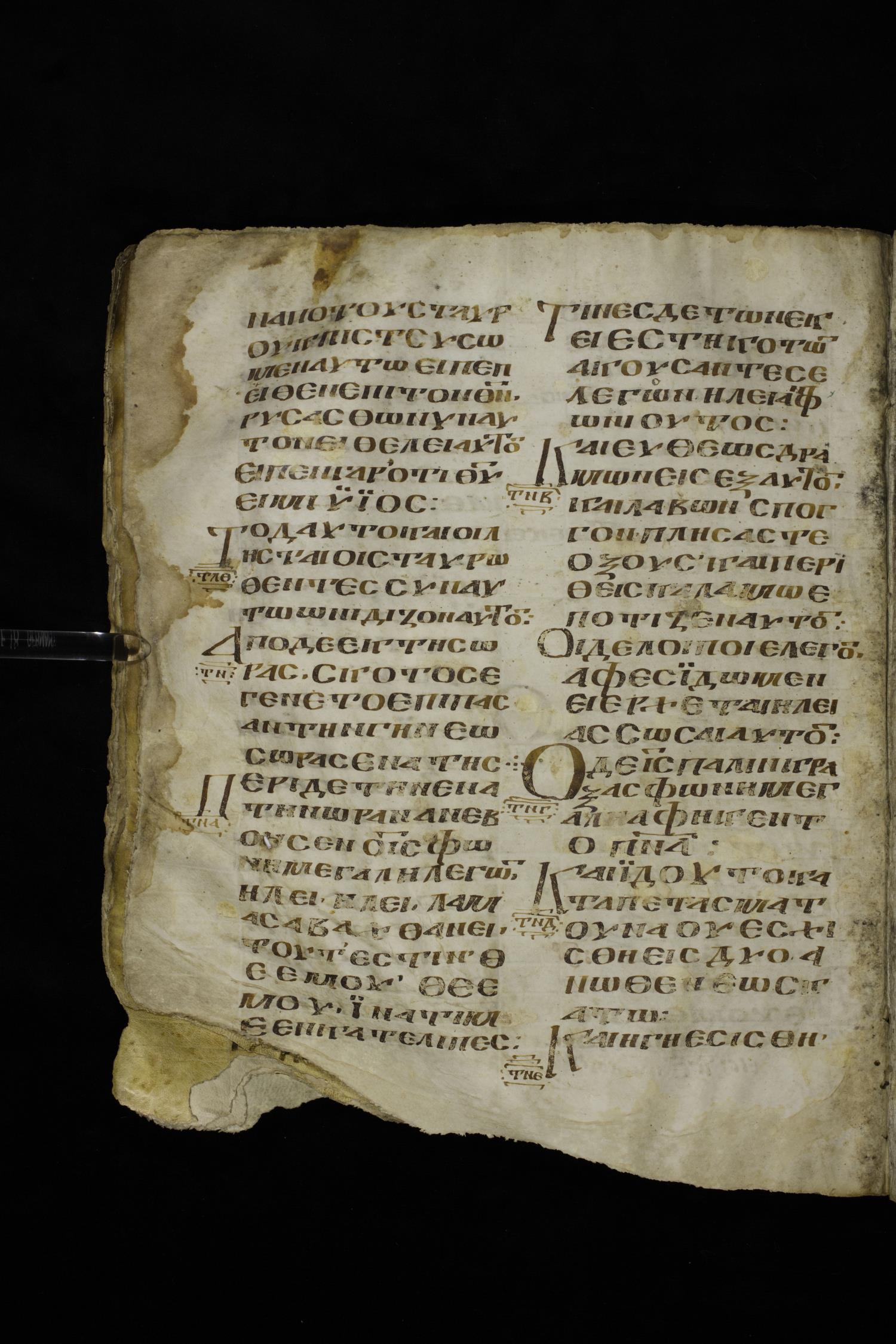 Ninth century majuscule of the Gospels on parchment; 249 leaves, 2 columns, 22-28 lines per column. Images were taken at the National Centre of Manuscripts in the Republic of Georgia.