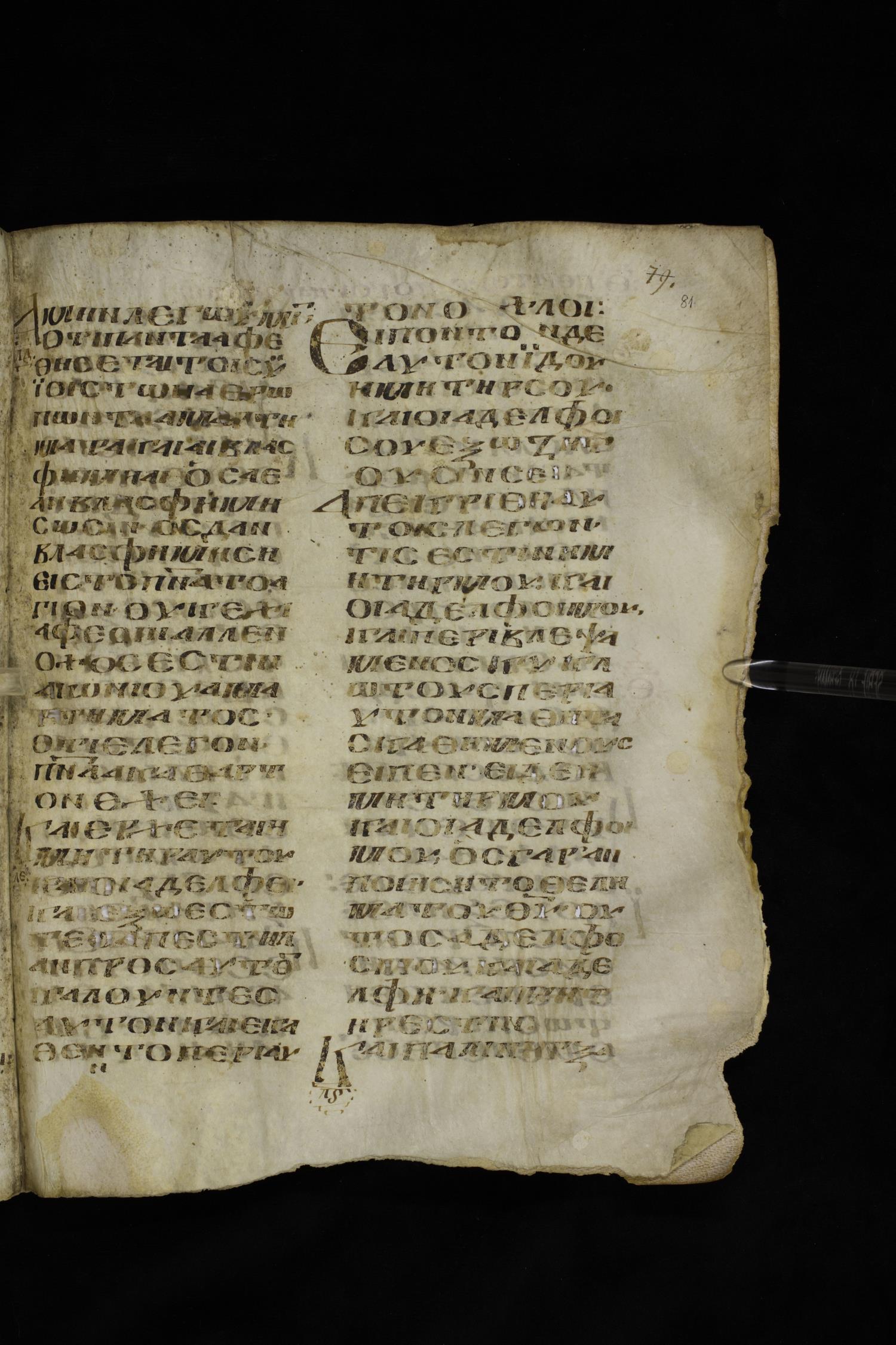 Ninth century majuscule of the Gospels on parchment; 249 leaves, 2 columns, 22-28 lines per column. Images were taken at the National Centre of Manuscripts in the Republic of Georgia.