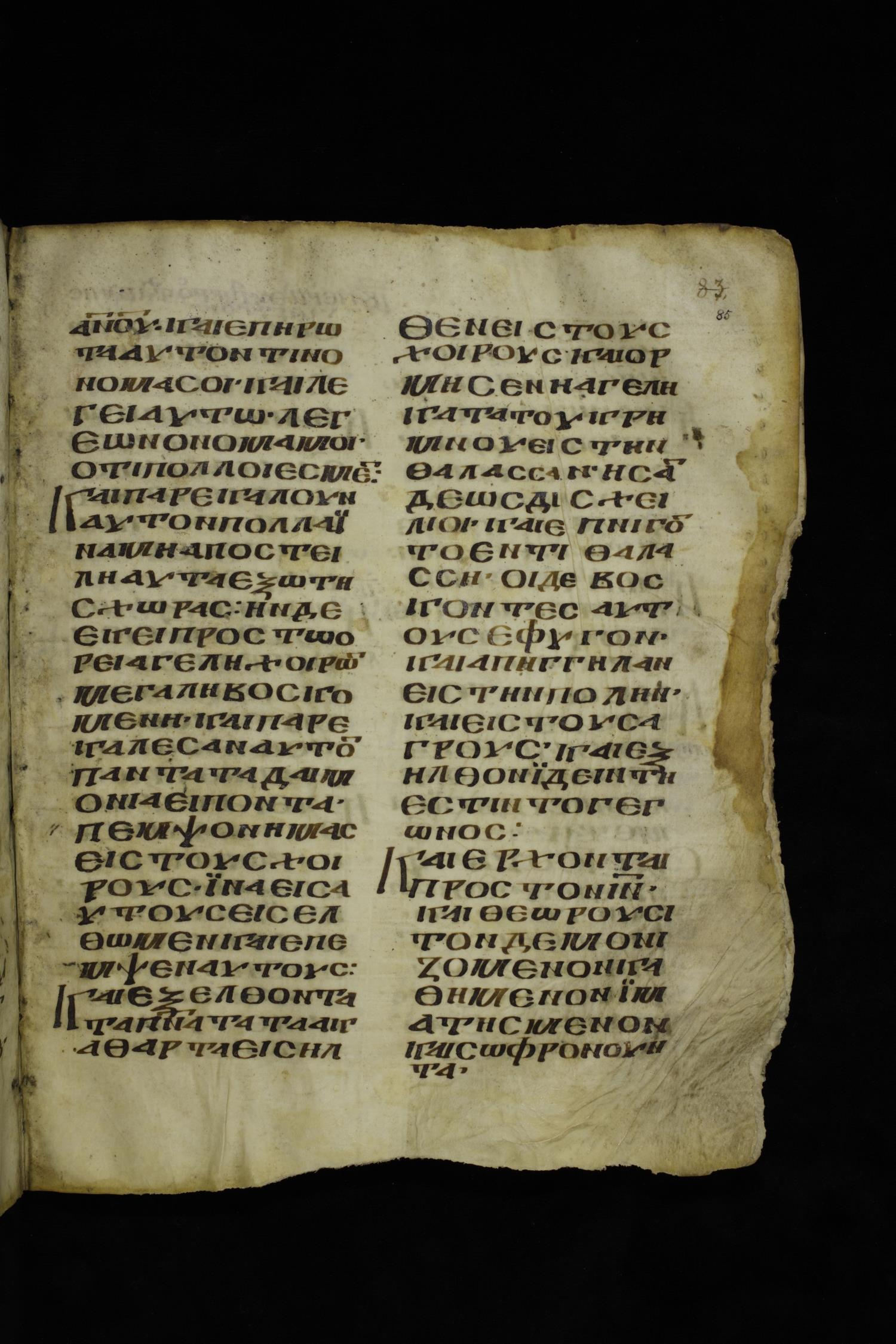 Ninth century majuscule of the Gospels on parchment; 249 leaves, 2 columns, 22-28 lines per column. Images were taken at the National Centre of Manuscripts in the Republic of Georgia.