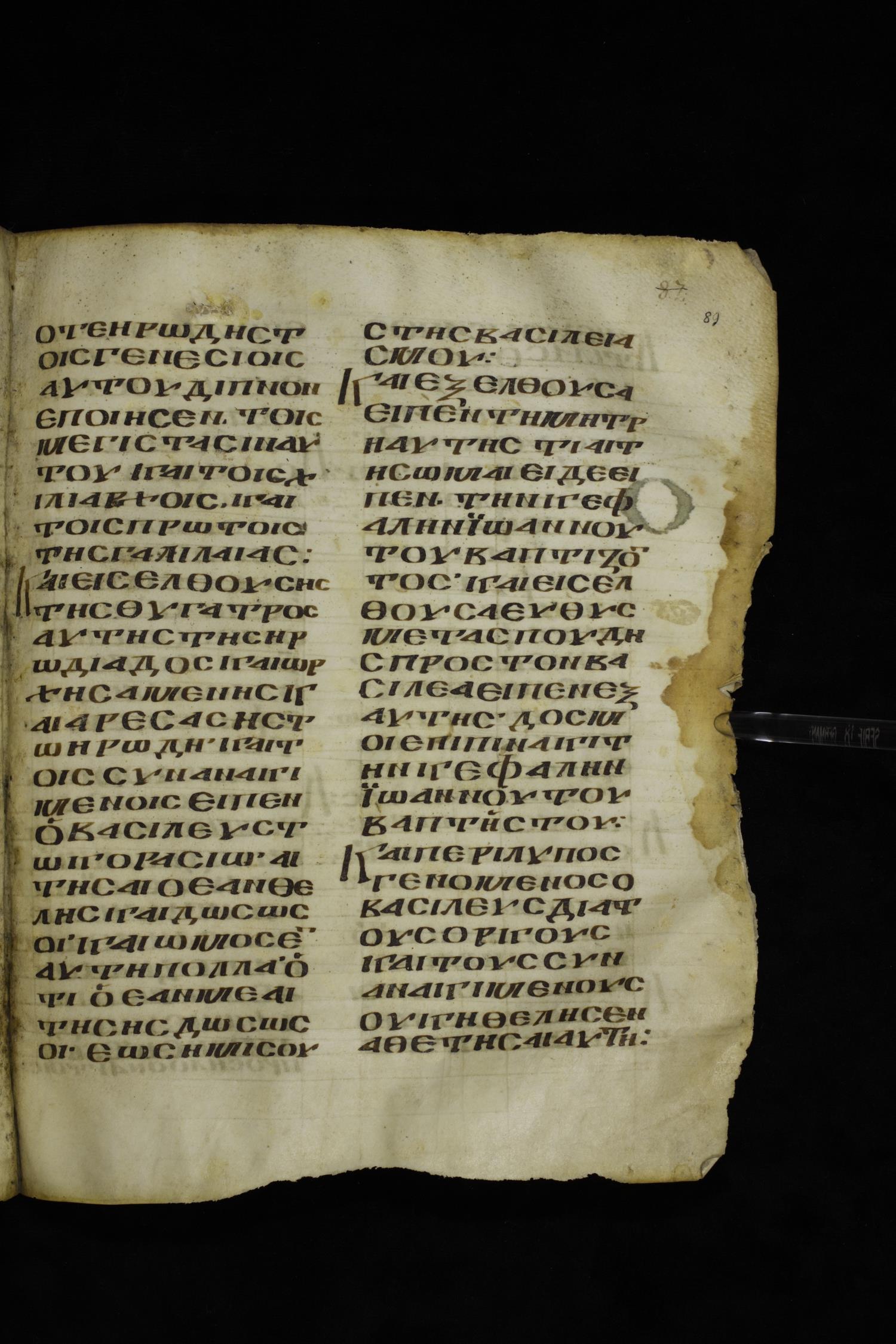 Ninth century majuscule of the Gospels on parchment; 249 leaves, 2 columns, 22-28 lines per column. Images were taken at the National Centre of Manuscripts in the Republic of Georgia.