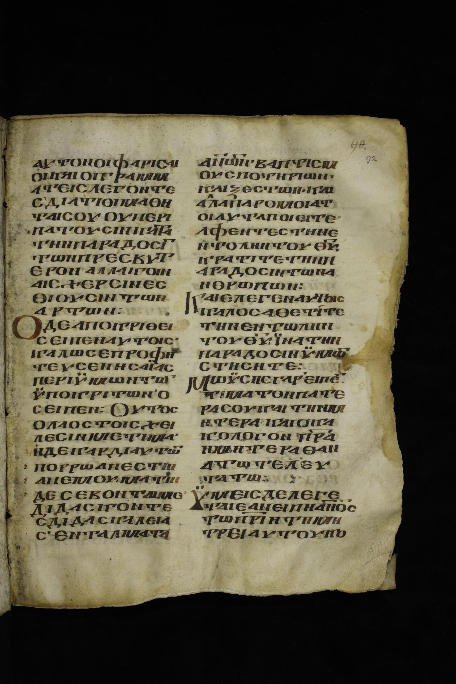Ninth century majuscule of the Gospels on parchment; 249 leaves, 2 columns, 22-28 lines per column. Images were taken at the National Centre of Manuscripts in the Republic of Georgia.