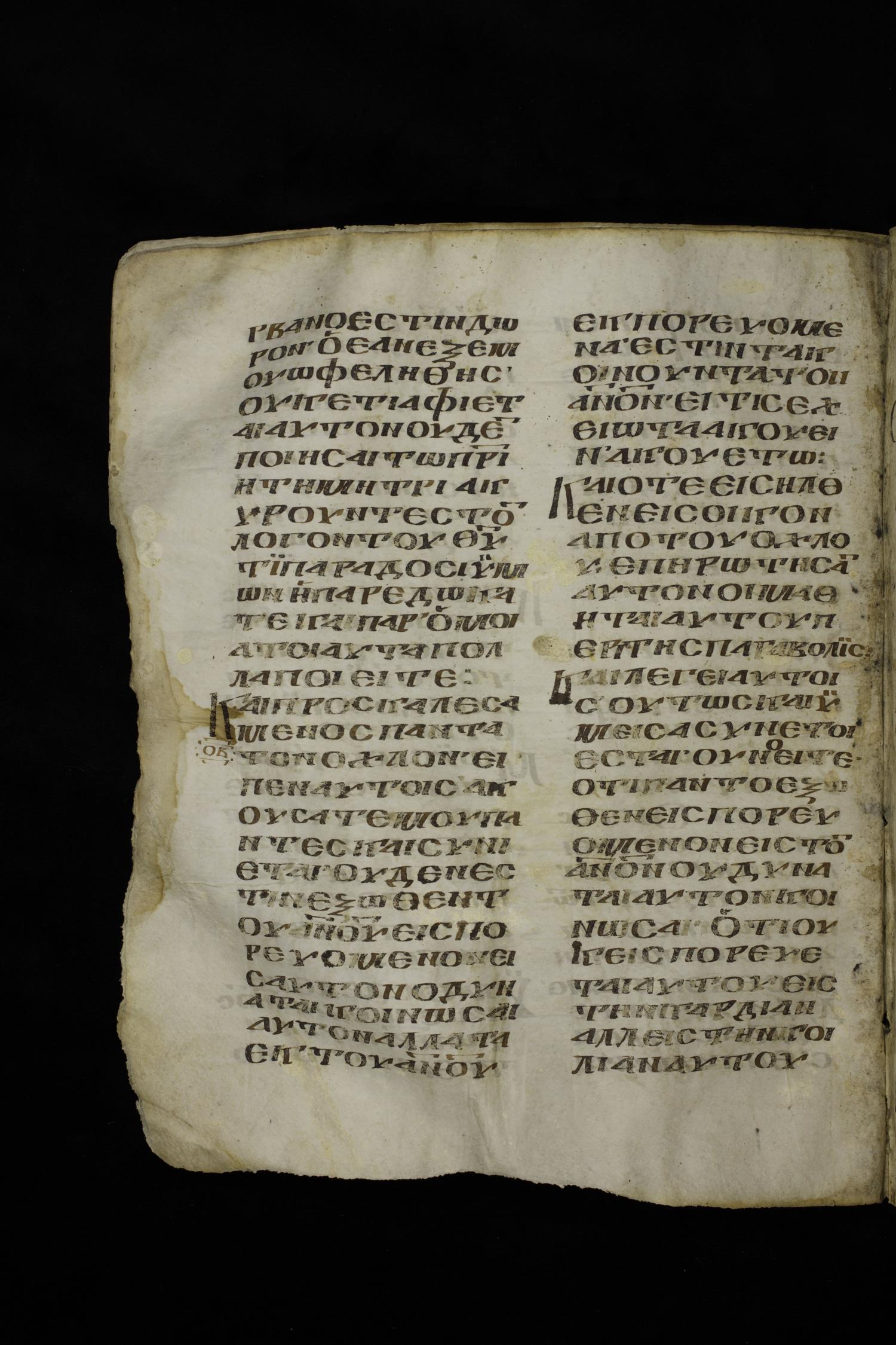 Ninth century majuscule of the Gospels on parchment; 249 leaves, 2 columns, 22-28 lines per column. Images were taken at the National Centre of Manuscripts in the Republic of Georgia.