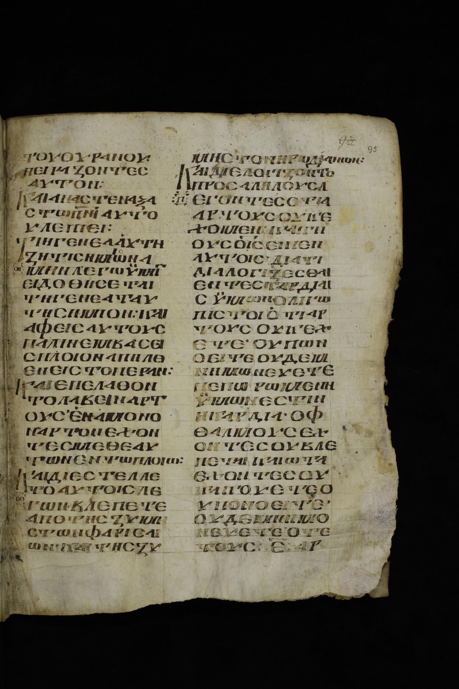 Ninth century majuscule of the Gospels on parchment; 249 leaves, 2 columns, 22-28 lines per column. Images were taken at the National Centre of Manuscripts in the Republic of Georgia.