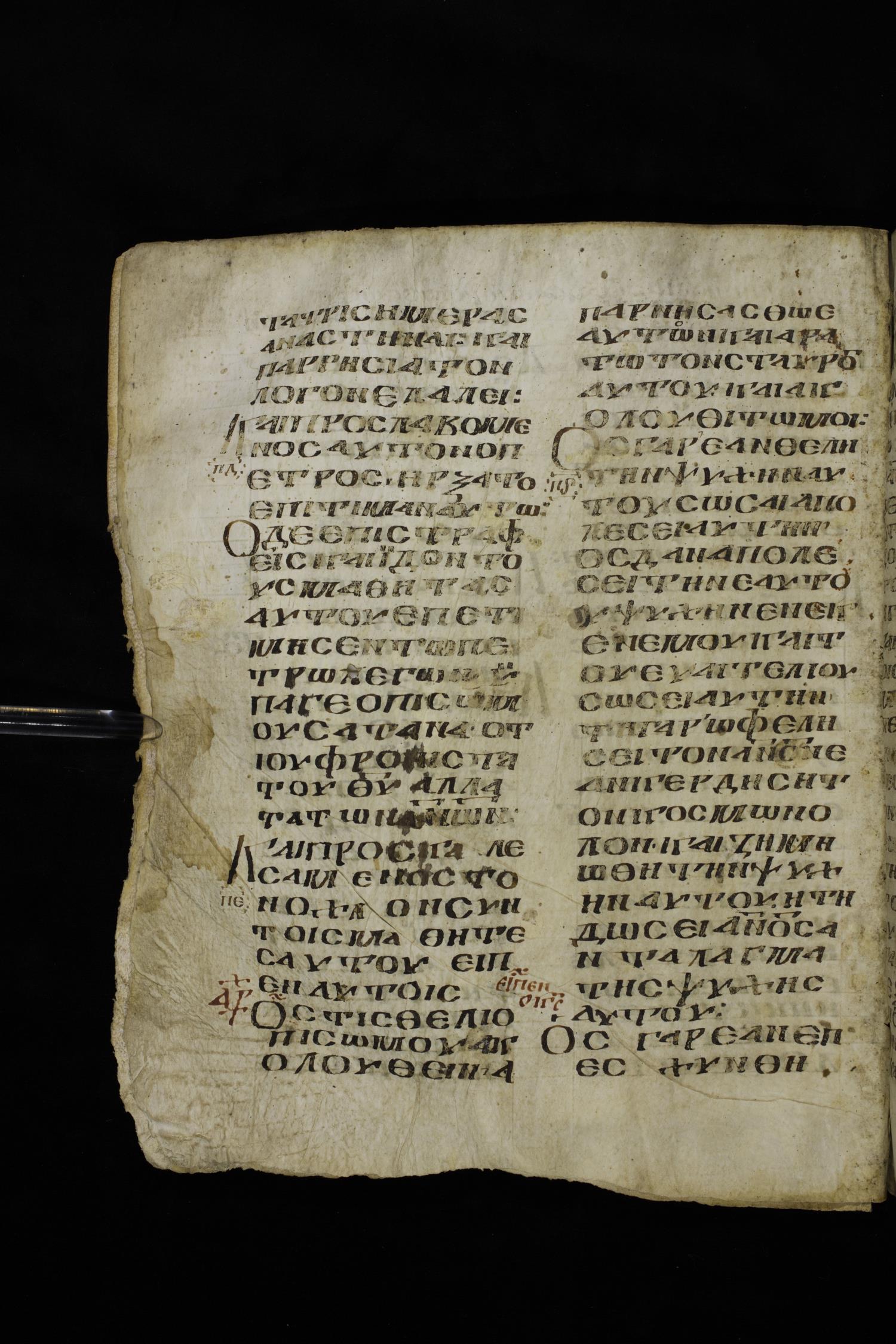 Ninth century majuscule of the Gospels on parchment; 249 leaves, 2 columns, 22-28 lines per column. Images were taken at the National Centre of Manuscripts in the Republic of Georgia.