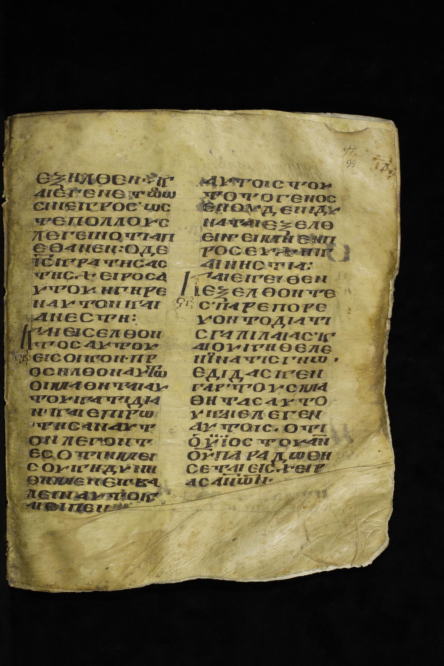 Ninth century majuscule of the Gospels on parchment; 249 leaves, 2 columns, 22-28 lines per column. Images were taken at the National Centre of Manuscripts in the Republic of Georgia.