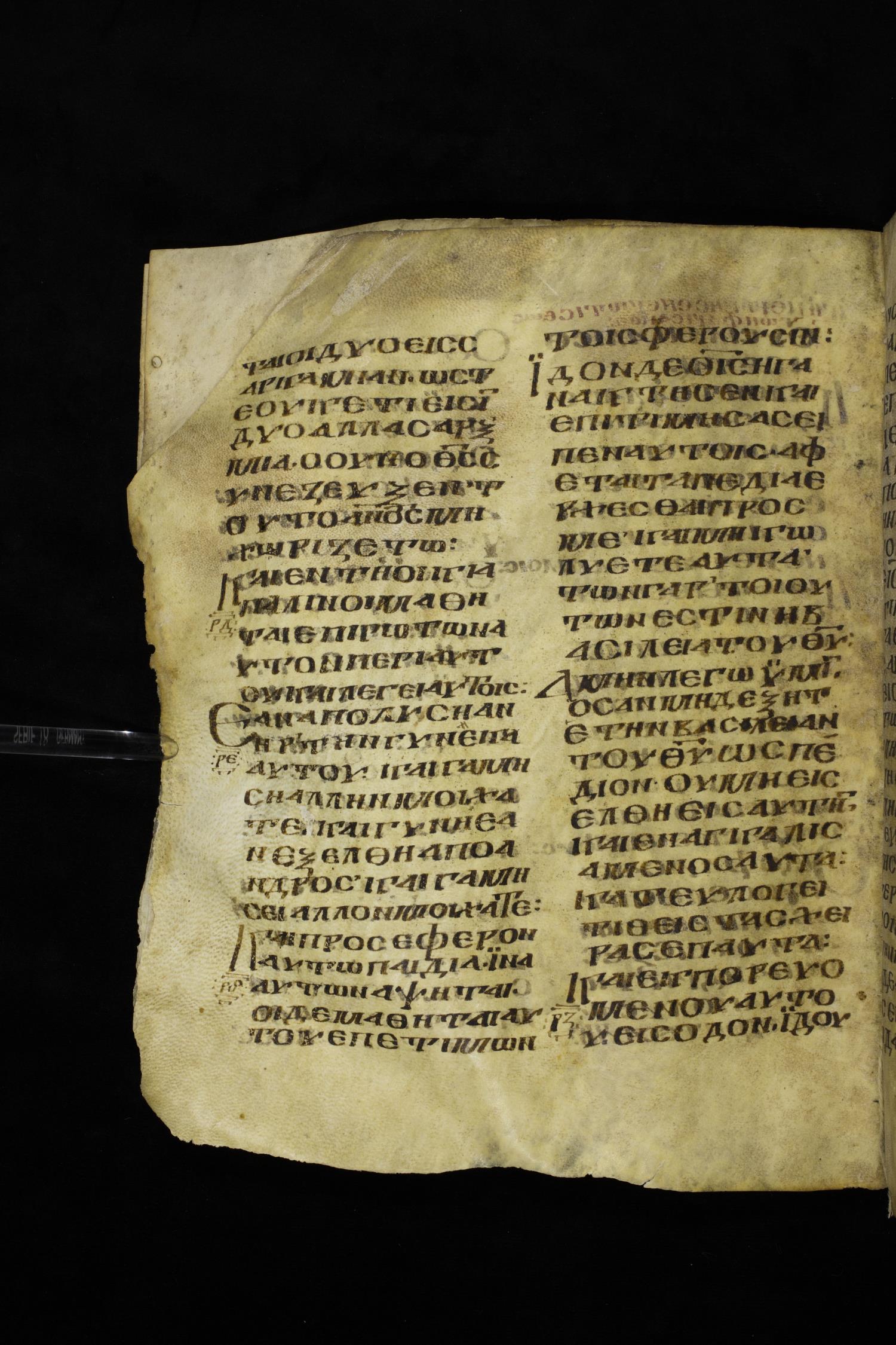 Ninth century majuscule of the Gospels on parchment; 249 leaves, 2 columns, 22-28 lines per column. Images were taken at the National Centre of Manuscripts in the Republic of Georgia.