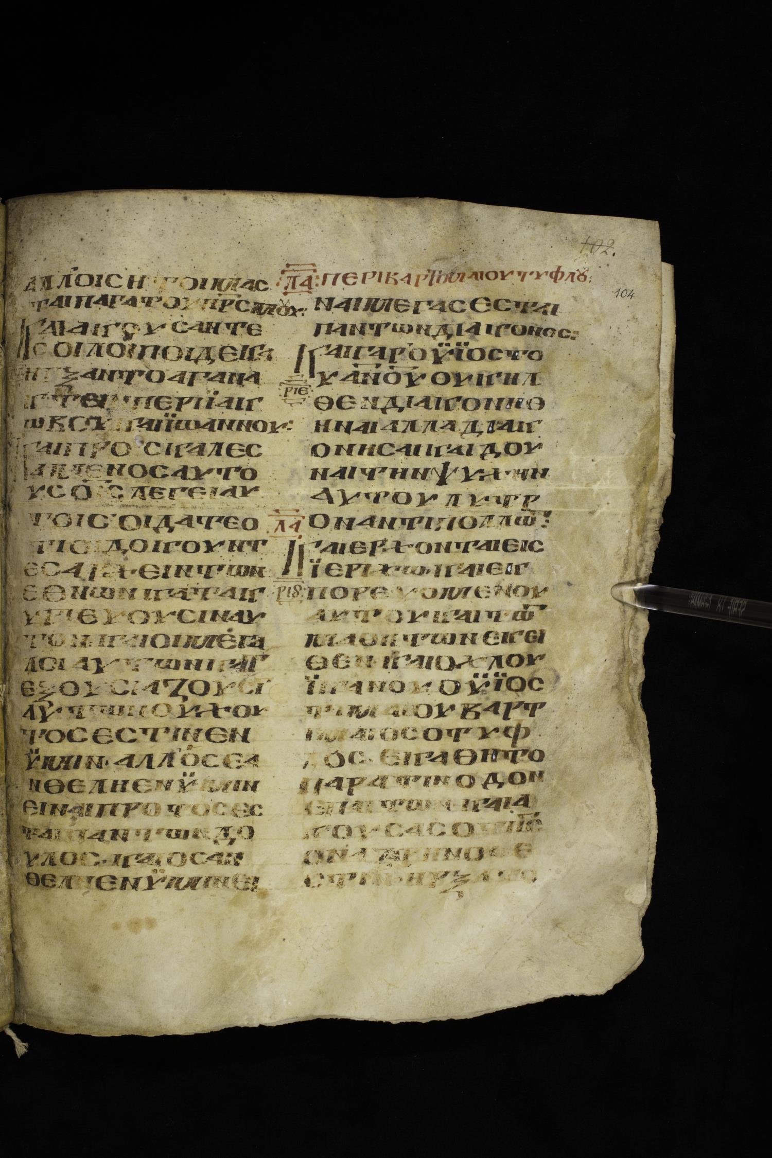 Ninth century majuscule of the Gospels on parchment; 249 leaves, 2 columns, 22-28 lines per column. Images were taken at the National Centre of Manuscripts in the Republic of Georgia.