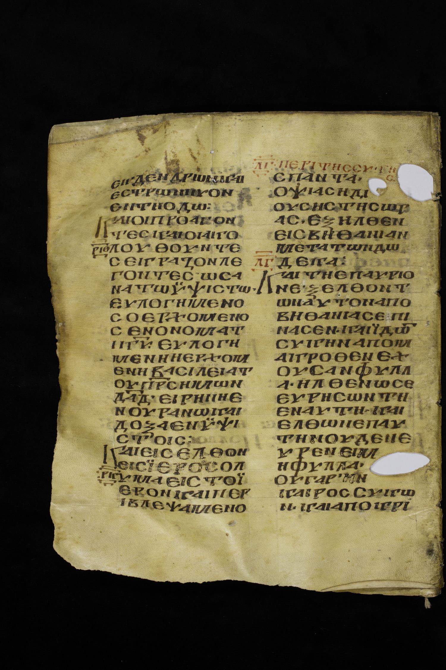 Ninth century majuscule of the Gospels on parchment; 249 leaves, 2 columns, 22-28 lines per column. Images were taken at the National Centre of Manuscripts in the Republic of Georgia.
