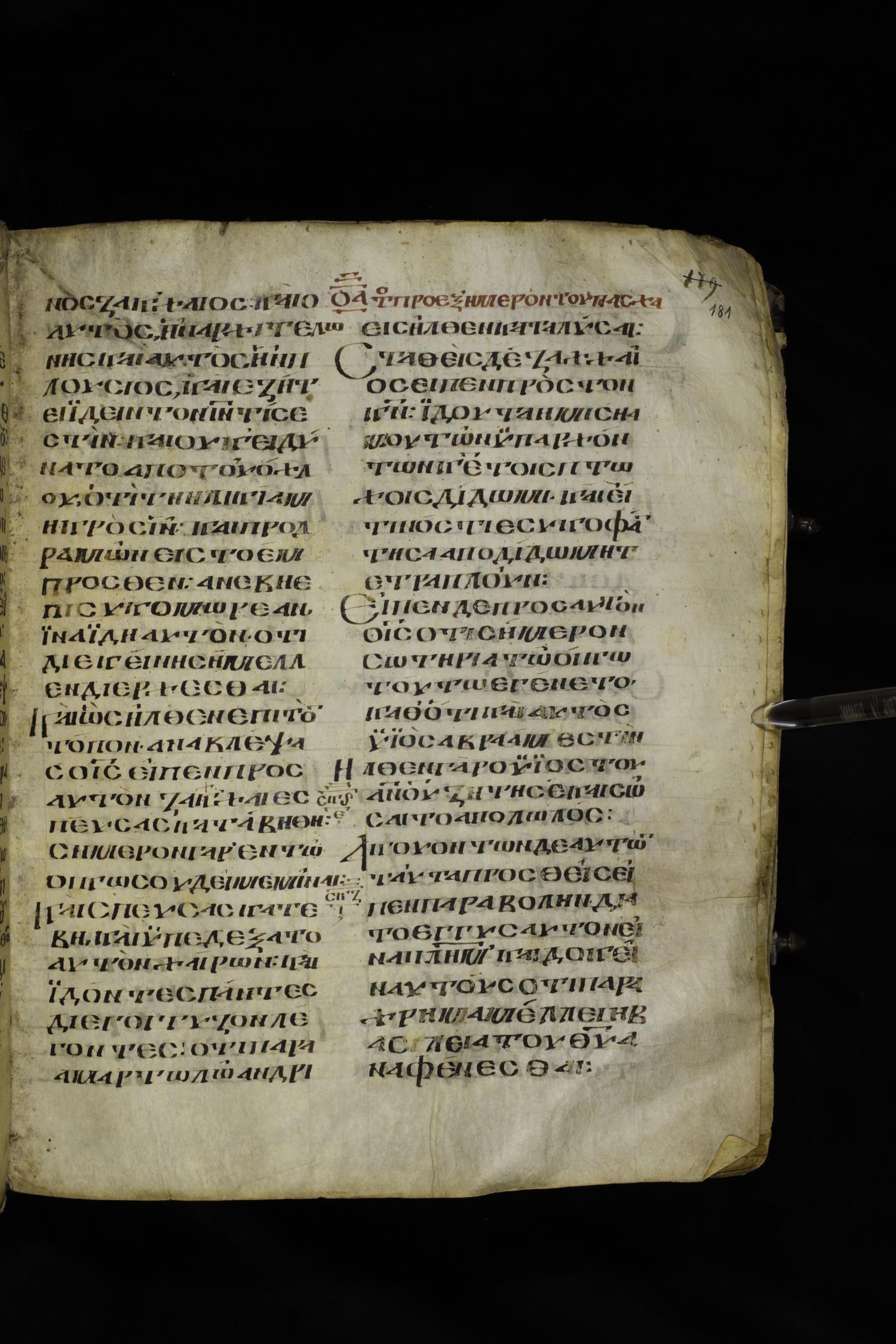 Ninth century majuscule of the Gospels on parchment; 249 leaves, 2 columns, 22-28 lines per column. Images were taken at the National Centre of Manuscripts in the Republic of Georgia.