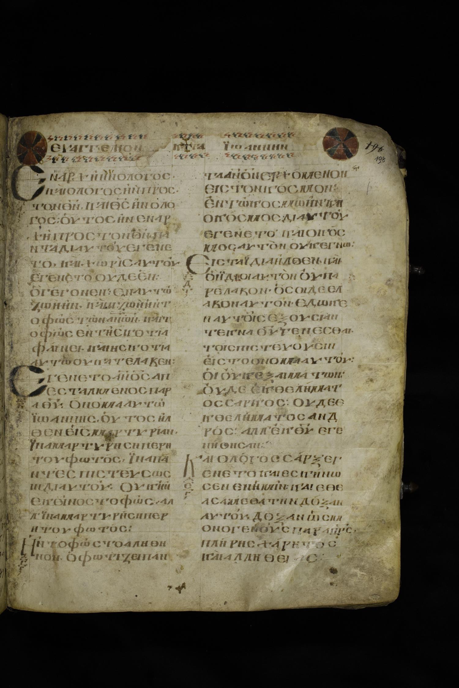 Ninth century majuscule of the Gospels on parchment; 249 leaves, 2 columns, 22-28 lines per column. Images were taken at the National Centre of Manuscripts in the Republic of Georgia.