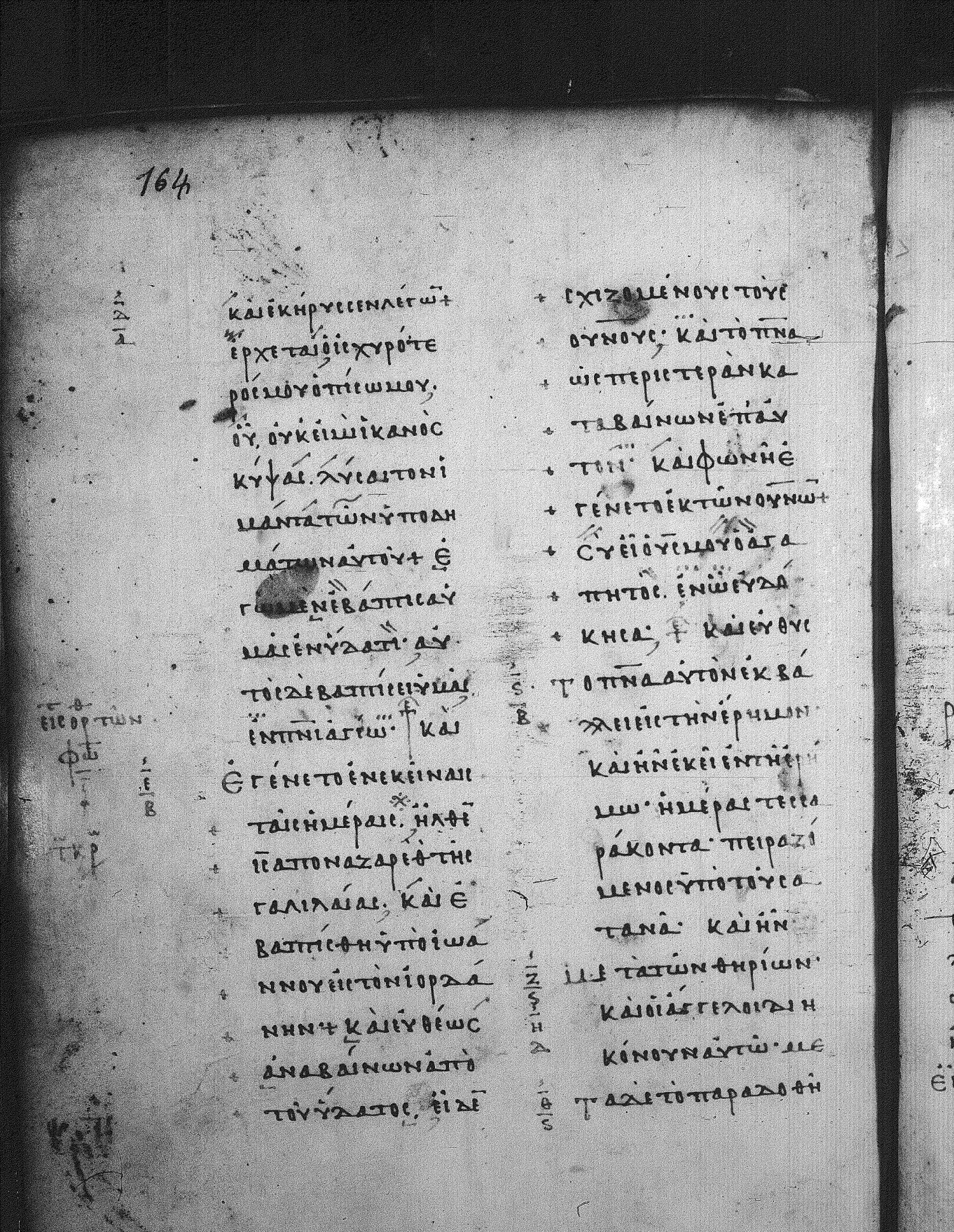 Ninth-century (10th c. by Parpulov) majuscule of the Gospels on parchment; 259 leaves, 2 columns, 19-22 lines per column. The digital microfilm images were generously donated to CSNTM.