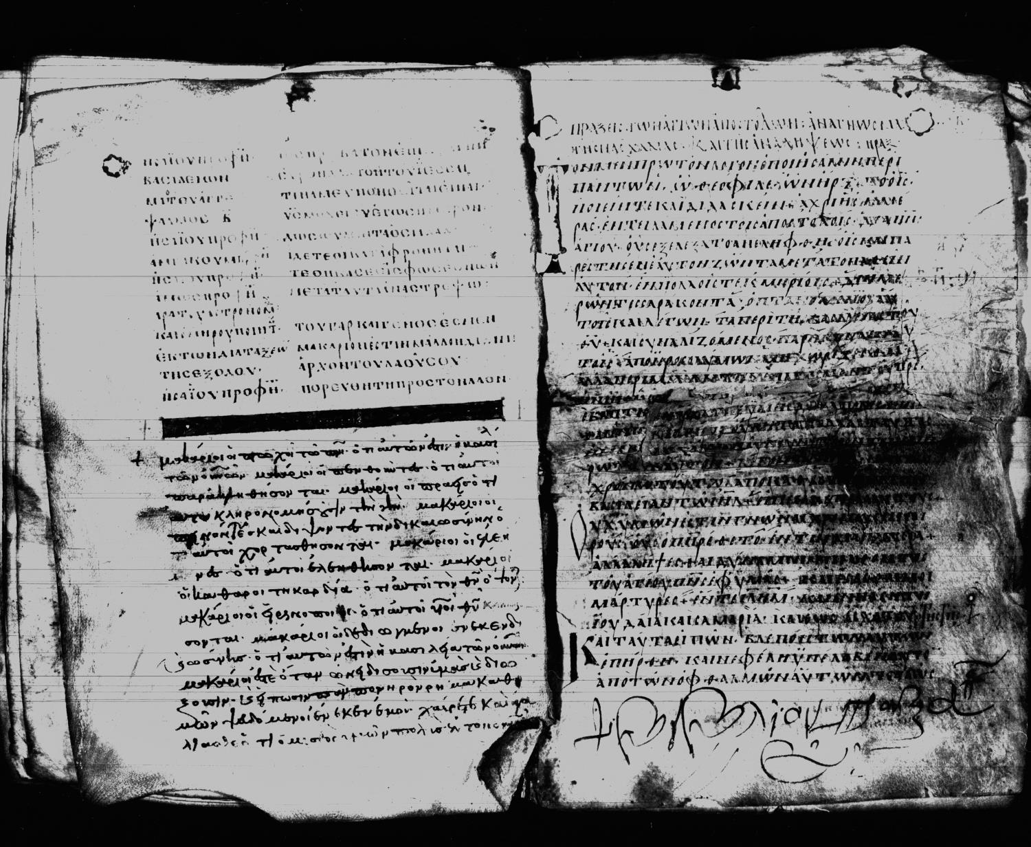 Ninth century majuscule of the Apostolos and Paul on parchment; 149 leaves, single column, 30 lines per column. Digital images are from microfilm.
