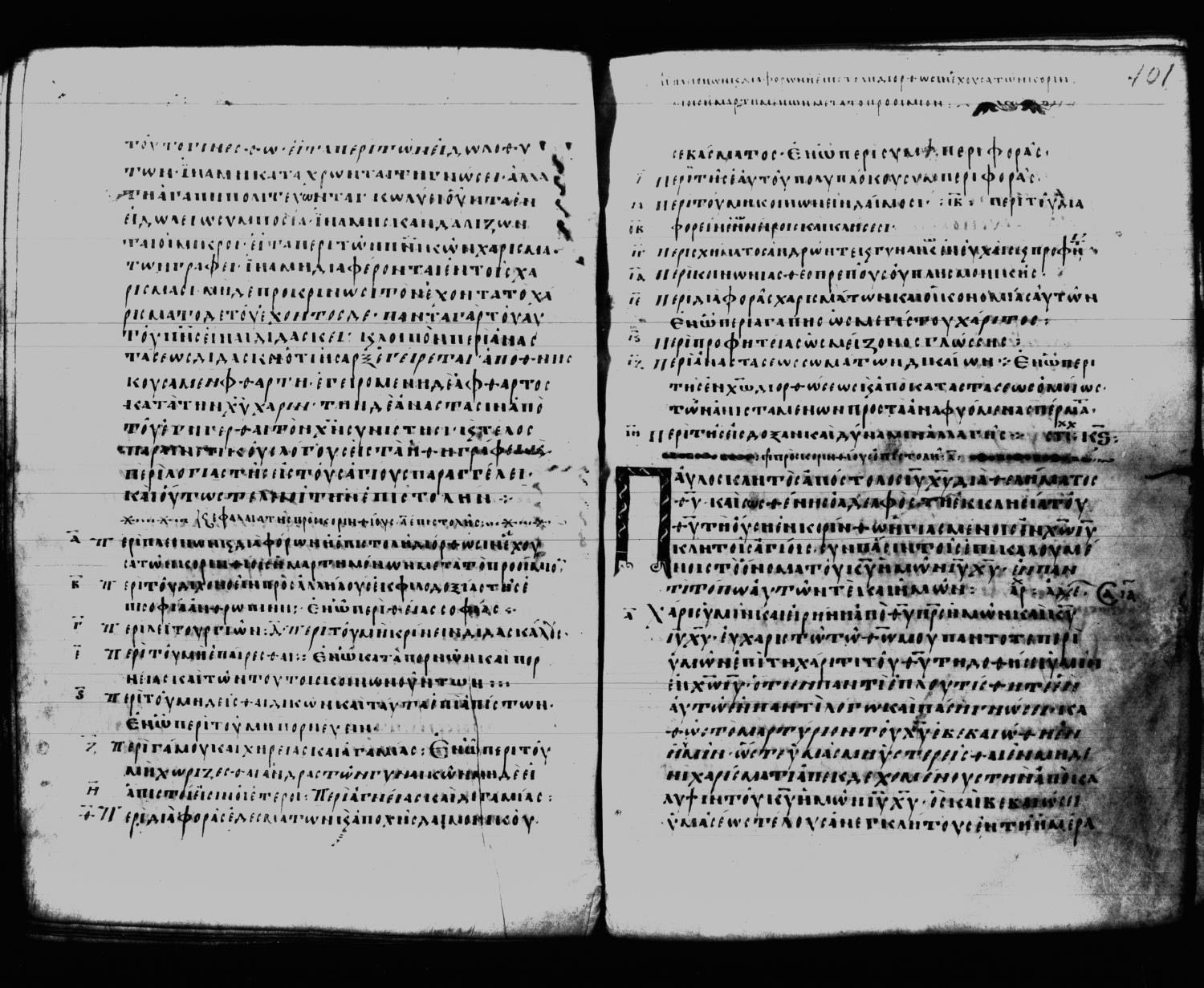 Ninth century majuscule of the Apostolos and Paul on parchment; 149 leaves, single column, 30 lines per column. Digital images are from microfilm.