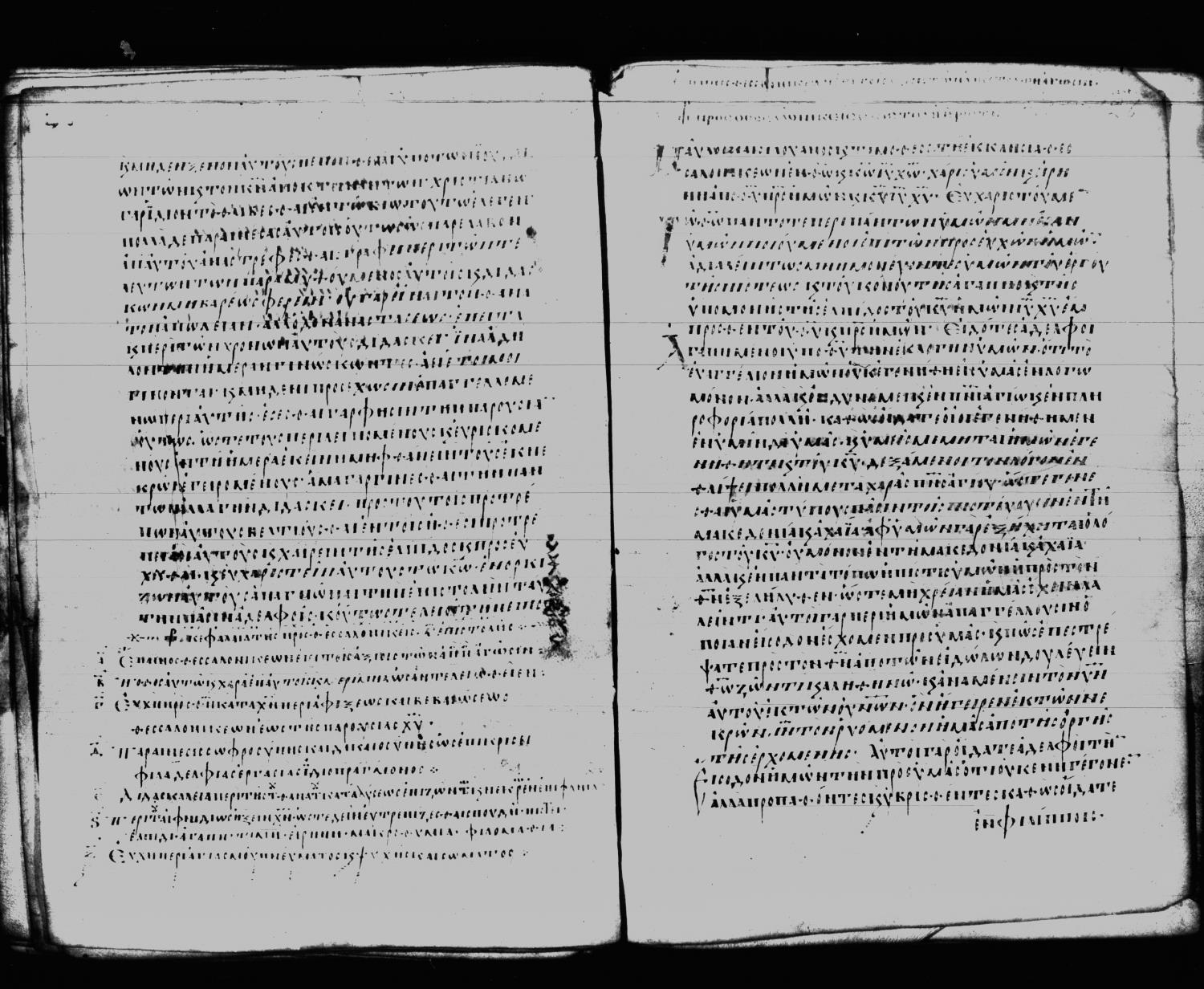 Ninth century majuscule of the Apostolos and Paul on parchment; 149 leaves, single column, 30 lines per column. Digital images are from microfilm.