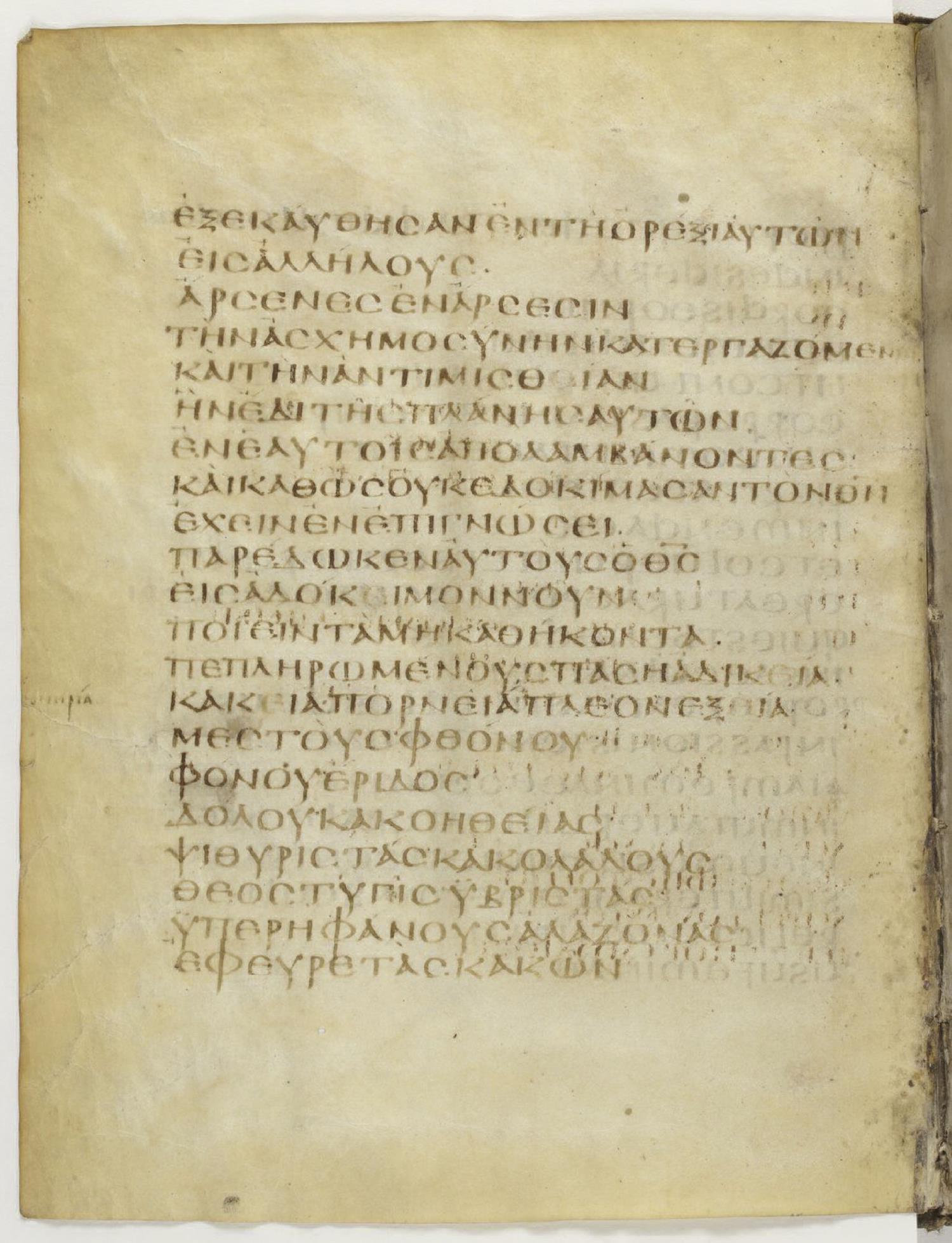 ὁμοίως τε καὶ οἱ ἄρσενες ἀφέντες τὴν φυσικὴν χρῆσιν τῆς θηλείας ἐξεκαύθησαν ἐν τῇ ὀρέξει αὐτῶν εἰς ἀλλήλους ἄρσενες ἐν ἄρσεσιν, τὴν ἀσχημοσύνην κατεργαζόμενοι καὶ τὴν ἀντιμισθίαν ἣν ἔδει τῆς πλάνης αὐτῶν ἐν αὑτοῖς / ἑαυτοῖς ἀπολαμβάνοντες.