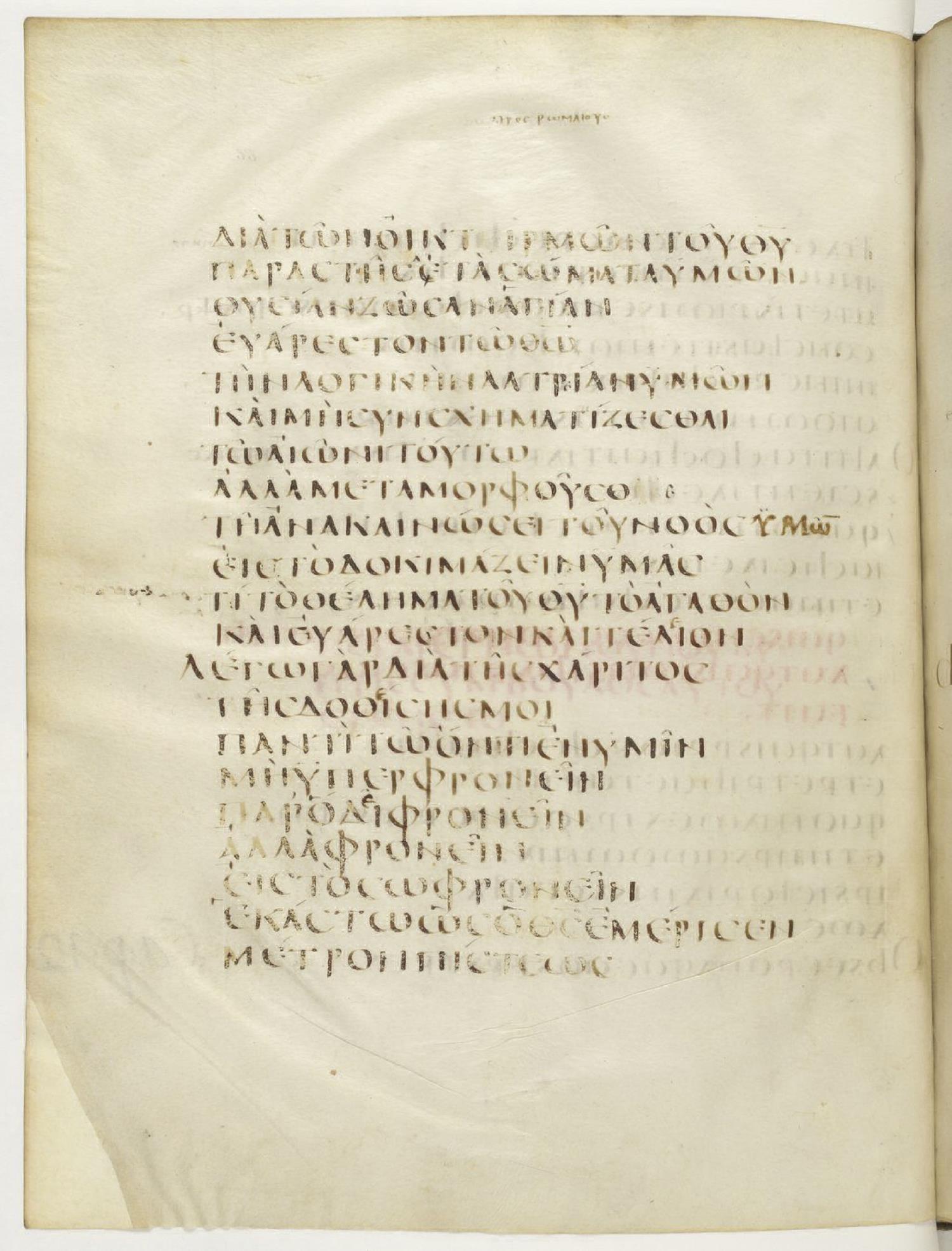 καὶ μὴ συνσχηματίζεσθε / συσχηματίζεσθε τῷ αἰῶνι τούτῳ, ἀλλὰ μεταμορφοῦσθε τῇ ἀνακαινώσει τοῦ νοός, εἰς τὸ δοκιμάζειν ὑμᾶς τί τὸ θέλημα τοῦ θεοῦ, τὸ ἀγαθὸν καὶ εὐάρεστον καὶ τέλειον.