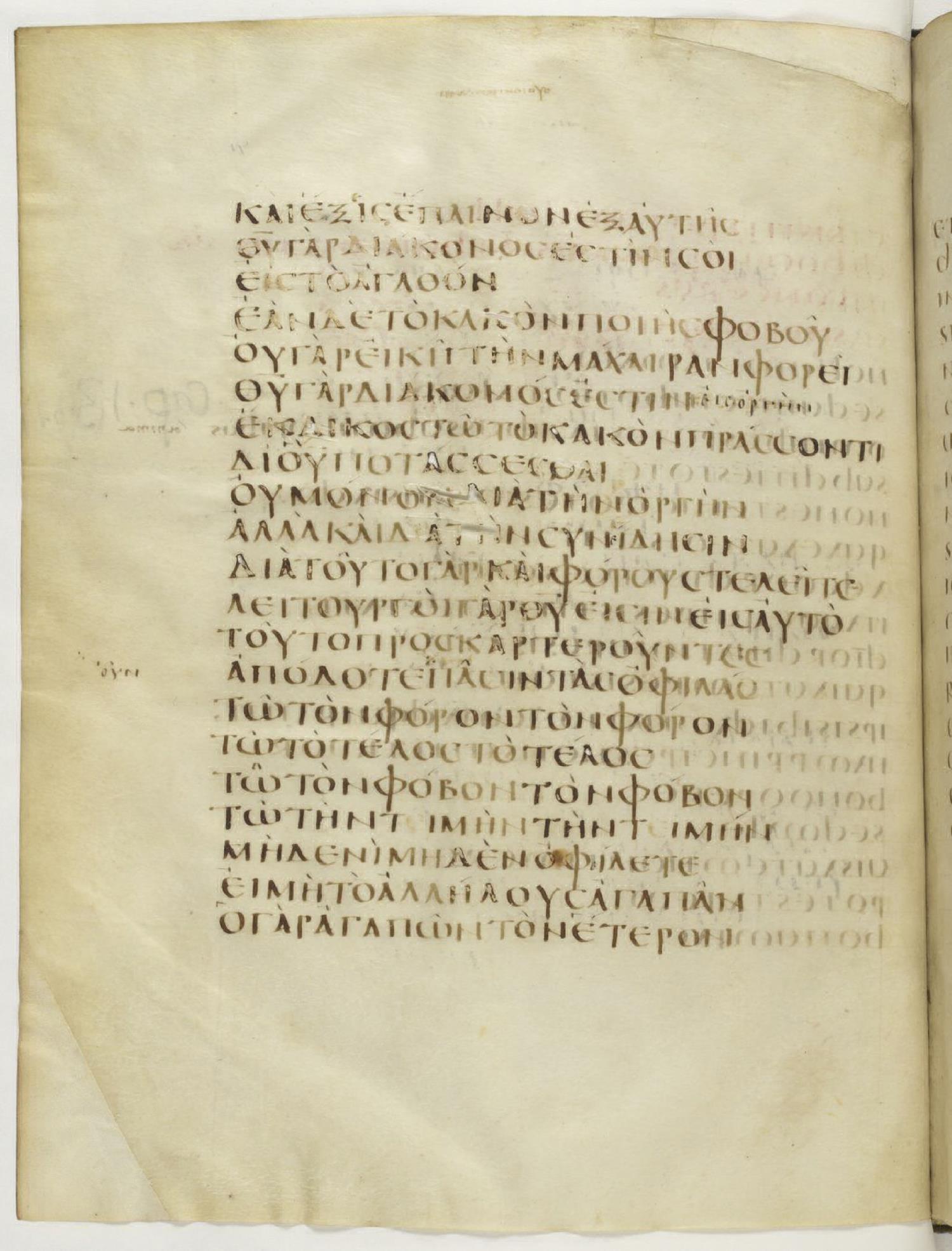 θεοῦ γὰρ διάκονός ἐστιν σοὶ εἰς τὸ ἀγαθόν. ἐὰν δὲ τὸ κακὸν ποιῇς, φοβοῦ· οὐ γὰρ εἰκῇ τὴν μάχαιραν φορεῖ· θεοῦ γὰρ διάκονός ἐστιν, ἔκδικος εἰς ὀργὴν τῷ τὸ κακὸν πράσσοντι.