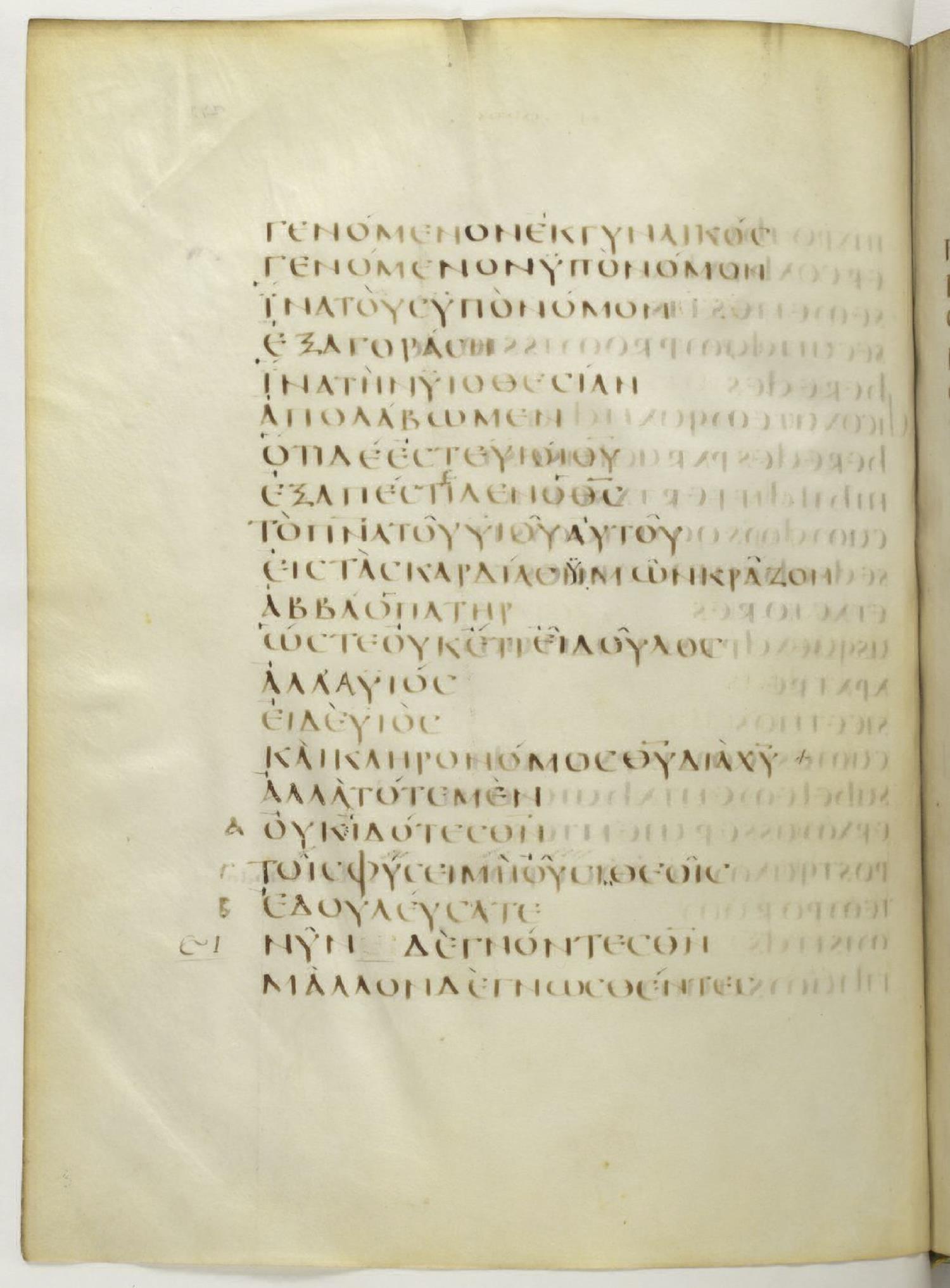 Codex Claromontanus is a sixth century majuscule of Paul on parchment; Greek-Latin diglot; 533 leaves, single column, 21 lines per column. For more recent images, please visit the Bibliothèque Nationale, Gr 107 and Gr 107 A.