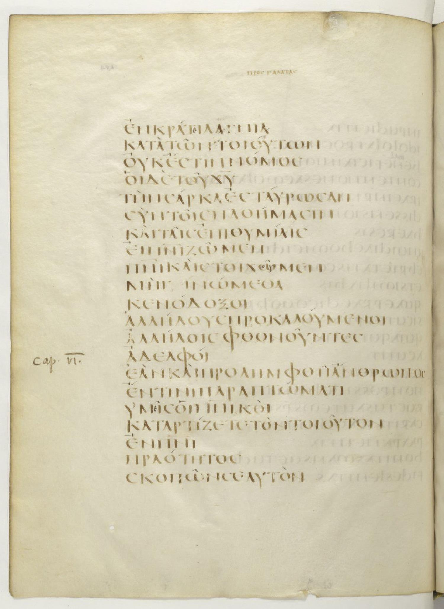 Codex Claromontanus is a sixth century majuscule of Paul on parchment; Greek-Latin diglot; 533 leaves, single column, 21 lines per column. For more recent images, please visit the Bibliothèque Nationale, Gr 107 and Gr 107 A.