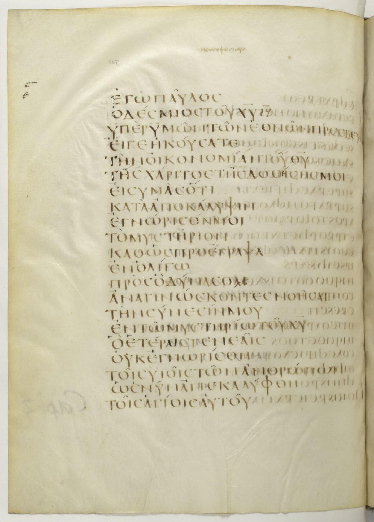 Τούτου χάριν ἐγὼ Παῦλος ὁ δέσμιος τοῦ χριστοῦ Ἰησοῦ ὑπὲρ ὑμῶν τῶν ἐθνῶν