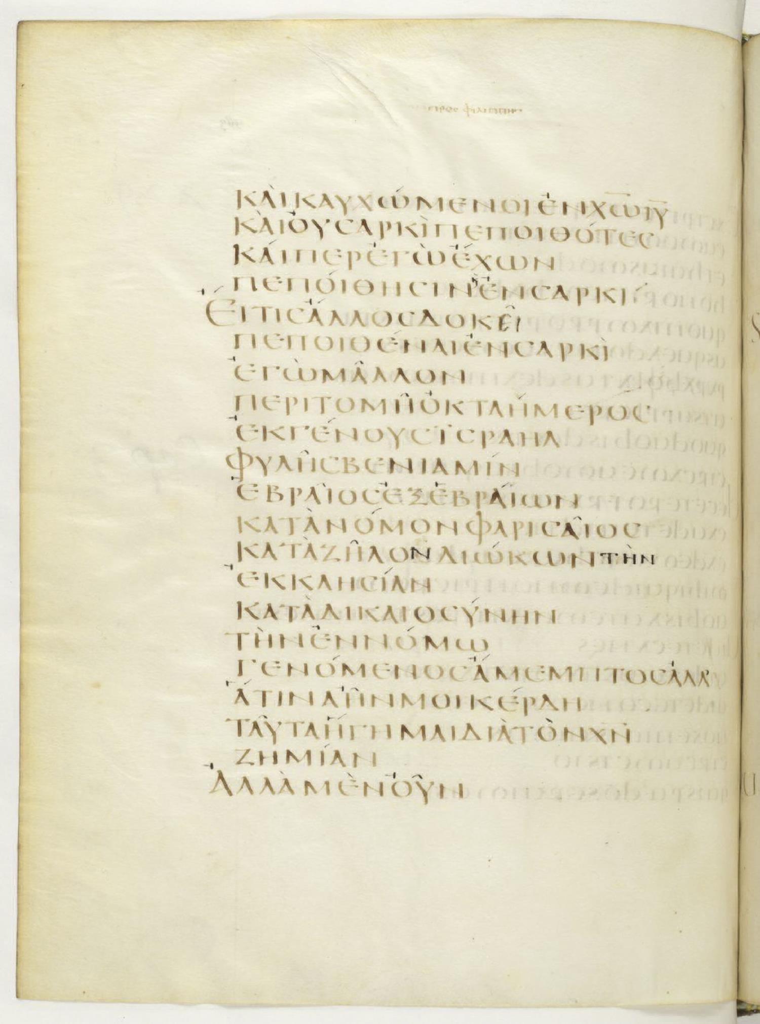 Codex Claromontanus is a sixth century majuscule of Paul on parchment; Greek-Latin diglot; 533 leaves, single column, 21 lines per column. For more recent images, please visit the Bibliothèque Nationale, Gr 107 and Gr 107 A.
